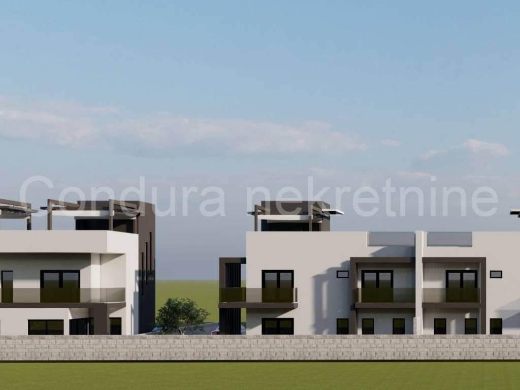 An einem attraktiven Standort in Privlaka, nur 450 Meter vom Meer und Sandstränden entfernt, befindet sich ein modernes Doppelhaus mit zwei Wohneinheiten.
