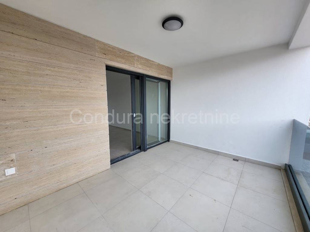 Vom Wohnzimmer aus gelangt man auf die Loggia mit einer Fläche von 10,39 m2.Über die Treppe des Gebäudes gelangt man auf die eigene Dachterrasse von 70 m2 mit wunderschönem Blick auf das Meer.