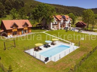 Donji Babin Potok, ein beeindruckendes Gewerbe- und Wohngebäude in Lika, nur 40 km vom Nationalpark Plitvicer Seen entfernt. Die Anlage befindet sich im Herzen von Lika, an einem wunderschönen Ort, umgeben von unberührter Natur und bietet Ruhe und Frieden, ideal zum Entspannen. Diese attraktive Lage in der Nähe des Nationalparks Plitvicer Seen bietet die perfekte Gelegenheit, die Schönheit der Natur, Waldwege und frische Luft zu genießen. Es ist ein perfekter Ort für die Entwicklung eines Tourismusunternehmens sowie für einen Familien- oder Wochenendaufenthalt.