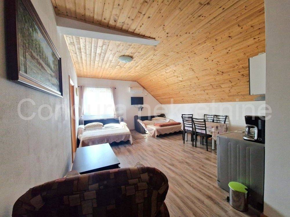 Neben dem Hauptwohngebäude befinden sich zwei Holzhäuser im Bergstil, die zum Charme und zur Atmosphäre dieses Touristenkomplexes beitragen. Jedes Haus ist ca. 70 m groß und enthält: