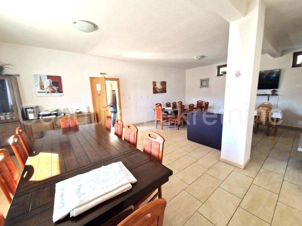 Fläche: Hauptgebäude von ca. 800 m, aufgeteilt auf drei Etagen.Erdgeschoss: Rezeption, Restaurantbereich, Waschküche, ein Schlafzimmer, 2 Badezimmer, 2 Toiletten.Obergeschoss: 1 Appartement (45 m) und 5 Doppelzimmer, insgesamt 6 Badezimmer.Zweiter Stock: 2 Appartements (je 50 m), ein Dreibettzimmer (35 m) und ein Doppelzimmer (28 m), jeweils mit Bad.Heizung: Zentrale Pelletheizung (105 kW) und Holzkamin im Erdgeschoss.Klimaanlagen: Insgesamt 10 Geräte.Energieautarkie: 11-kW-Kraftwerk, 5 Solarpaneele für Brauchwasser, 11-kW-Fahrzeugladestation.Entwässerung: Klärgrube, wartet auf Abwasseranschluss.Nebenobjekt: Garage von 50 m.Pool: 12 x 4 m, Poolheizung (17 kW) mit Wärmetauscher, umgeben von Natur und Grün.