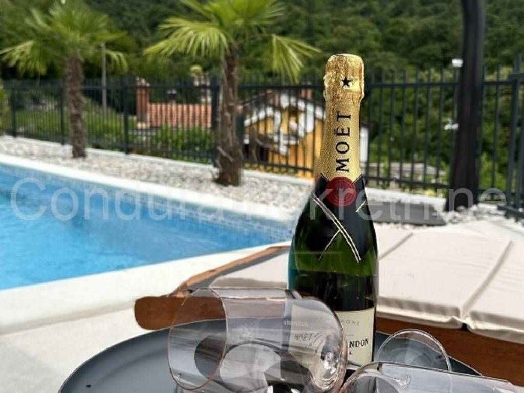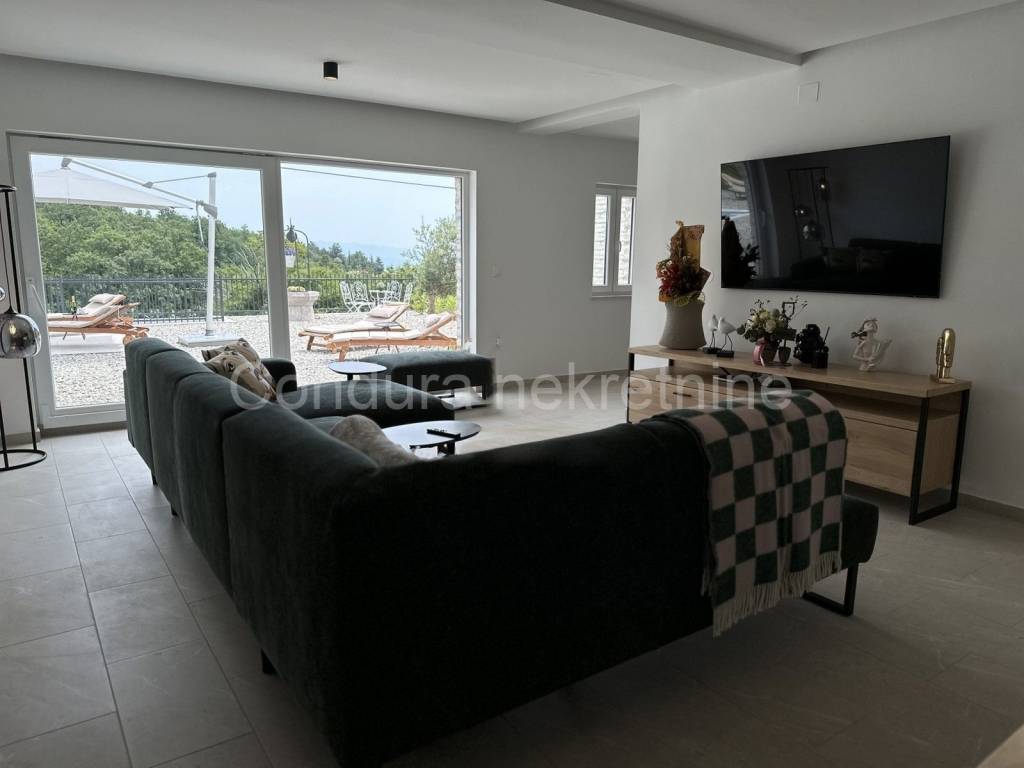 Opatija, Poljane zum Verkauf steht eine neu gebaute, komplett möblierte, moderne Villa mit Swimmingpool, in einer ruhigen Gegend mit herrlichem Blick auf das Meer und das umliegende Grün.