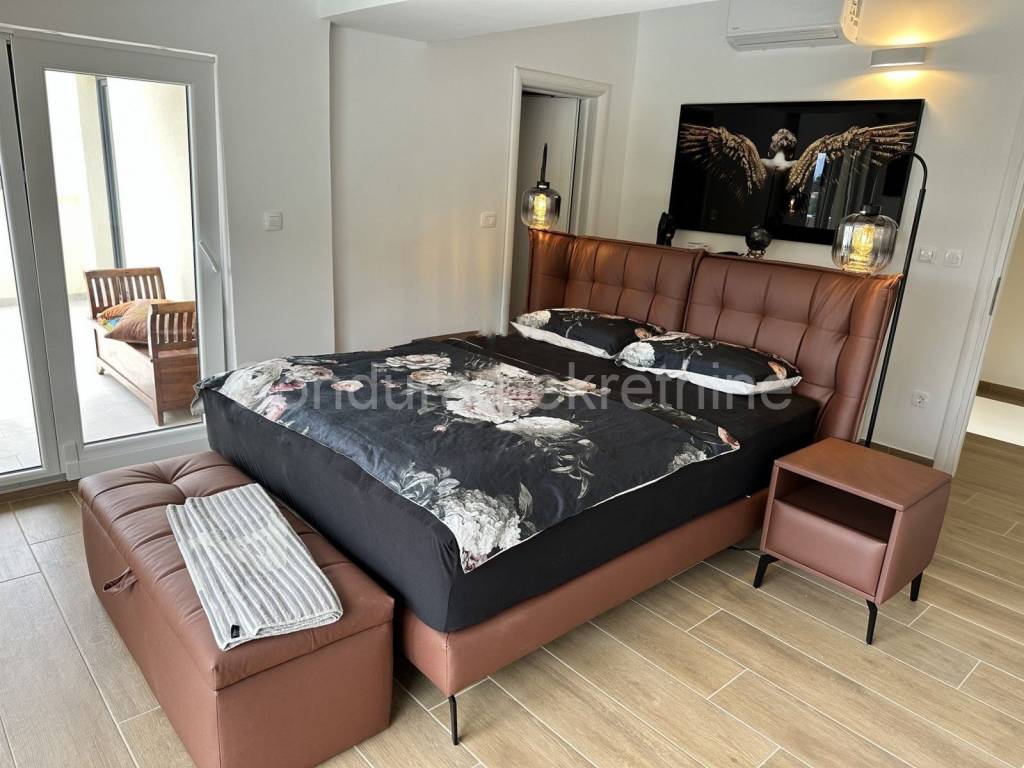 Etage: 3 komfortable Schlafzimmer, jeweils mit eigenem Bad. Die Schlafzimmer haben Zugang zum Balkon mit Blick auf das Meer und das Grün, das die Villa umgibt.