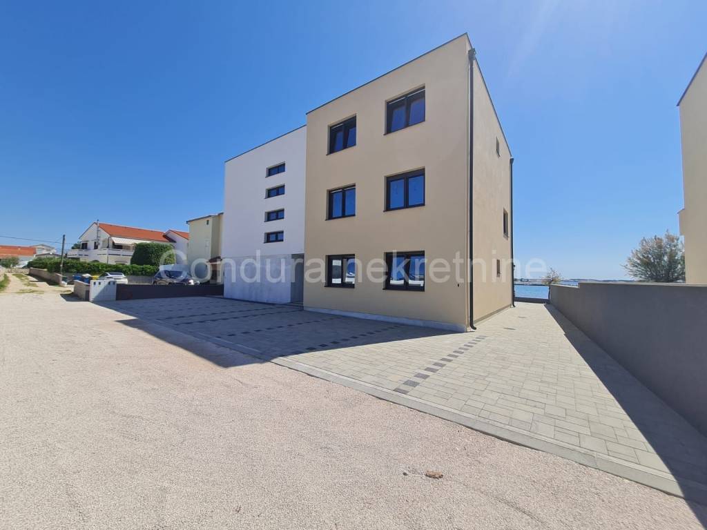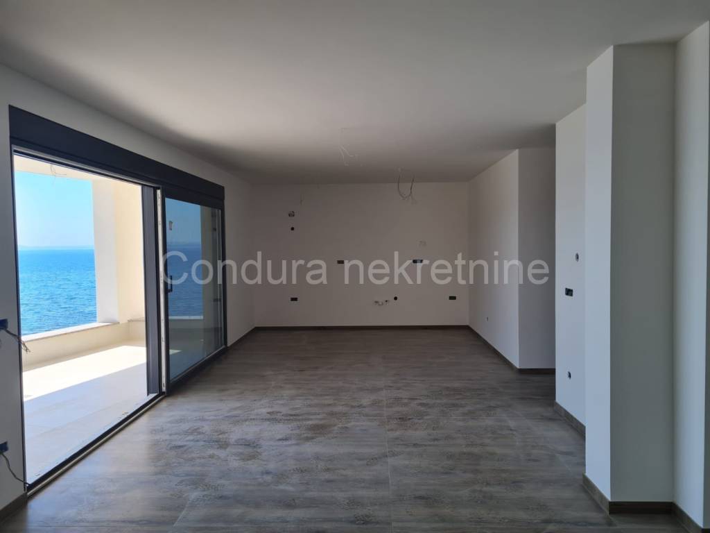 Zum Verkauf steht eine Wohnung im zweiten Stock eines Gebäudes mit vier Wohnheiten nur 20 m vom Meer entfernt. Die Wohnung hat einen freien Blick auf das Meer und den Strand.