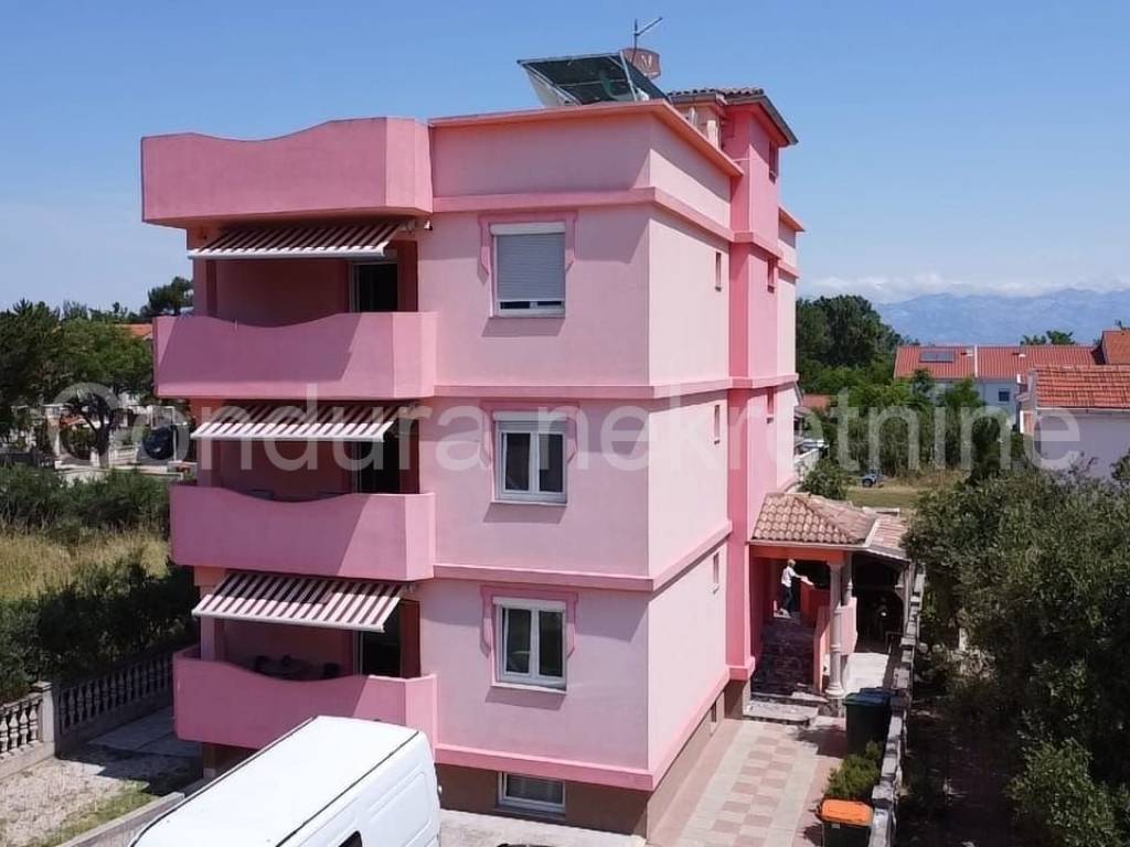 Prodaje se samostojeća apartmanska kuća u Ninskim Vodicama s ukupno devet apartmana. Kuća ima neto korisnu površinu 491,59 m2 a sastoji se od podruma u kojem je smještena garaža, dva spremišta, prostorija za druženje, mala kuhinja i kupaonica, te prizemlja i dva kata sa po tri apartmana na svakoj etaži. Svaki apartman se sastoji od jedne spavaće sobe, kupaonice, kuhinje s dnevnim boravkom i vlastite natkrivene terase. Kuća ima i prostranu krovnu terasu s koje se pruža prekrasan panormaski pogled na more, Velebit i okolicu.Svi apartmani su namješteni i klimatizirani.