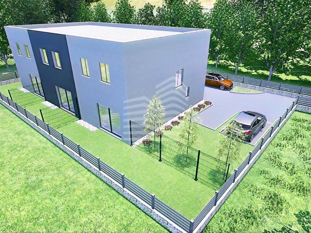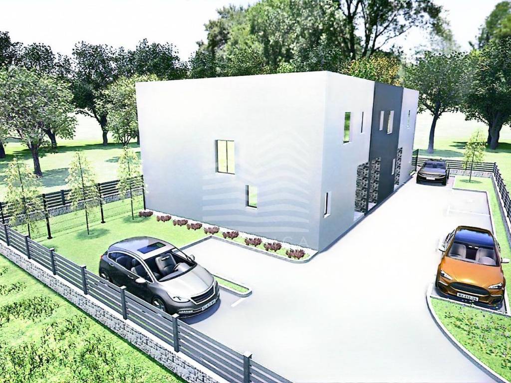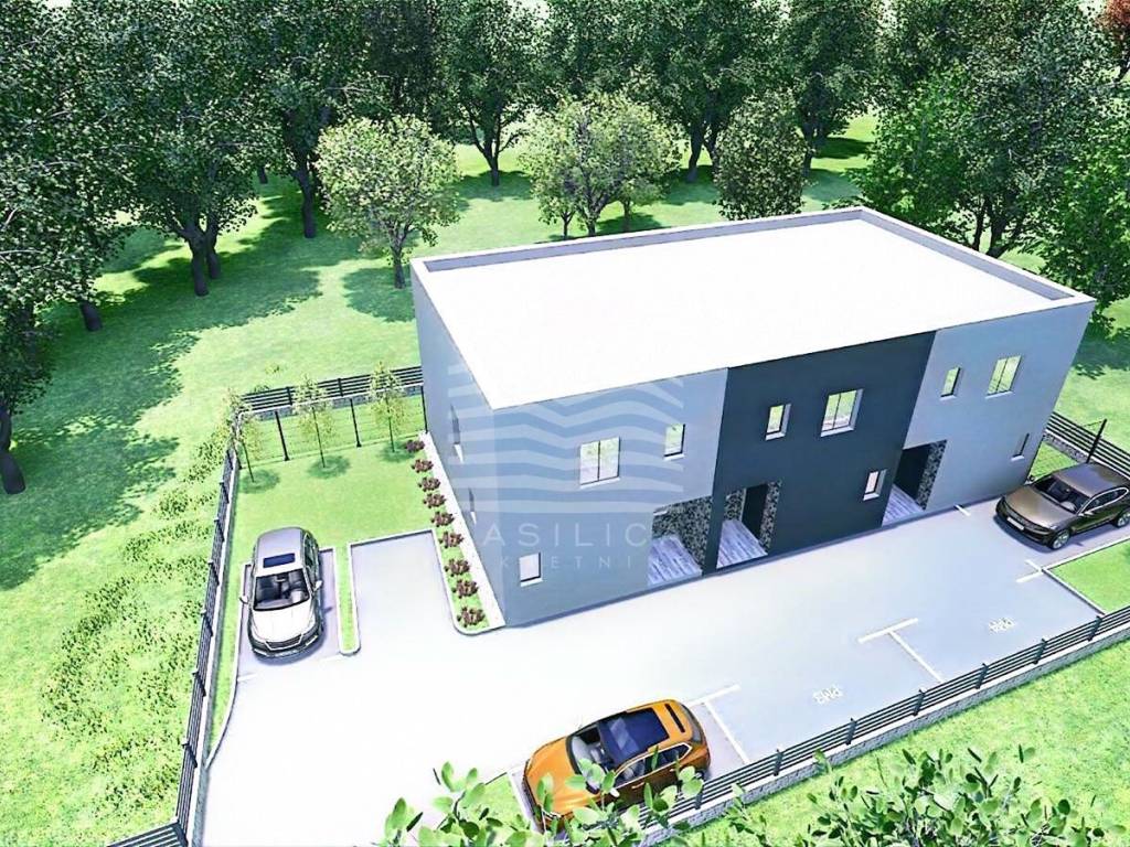 OPREMA:- Konstrukcija cigla, pregradni zidovi knauf- Izolacija termo fasada stiropor- PVC stolarijatroslojna PVC stolarija TROHA-DIL, antracit i rolo komarnici- dizalice topline i podno grijanje- klima u dnevnom boravku, priprema za klimu na 1. katu- krov -ravni nepropusni krov sa nepropusnom izolacijom + pvc membrana