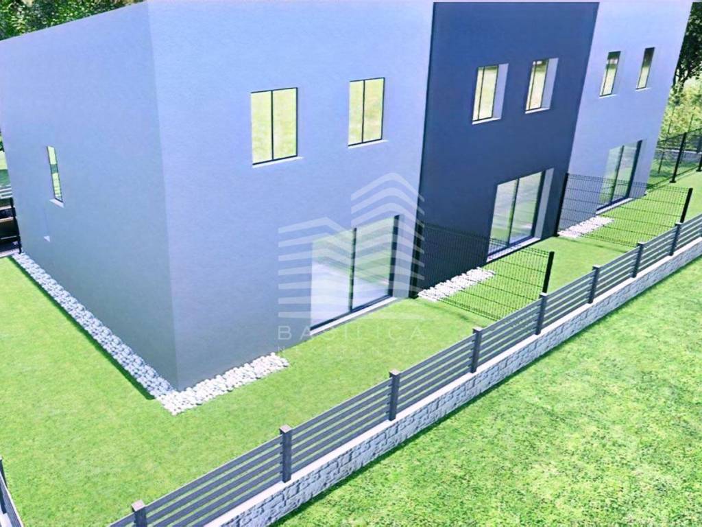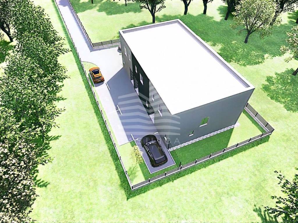 OPREMA:- Konstrukcija cigla, pregradni zidovi knauf- Izolacija termo fasada stiropor- PVC stolarijatroslojna PVC stolarija TROHA-DIL, antracit i rolo komarnici- dizalice topline i podno grijanje- klima u dnevnom boravku, priprema za klimu na 1. katu- krov -ravni nepropusni krov sa nepropusnom izolacijom + pvc membrana