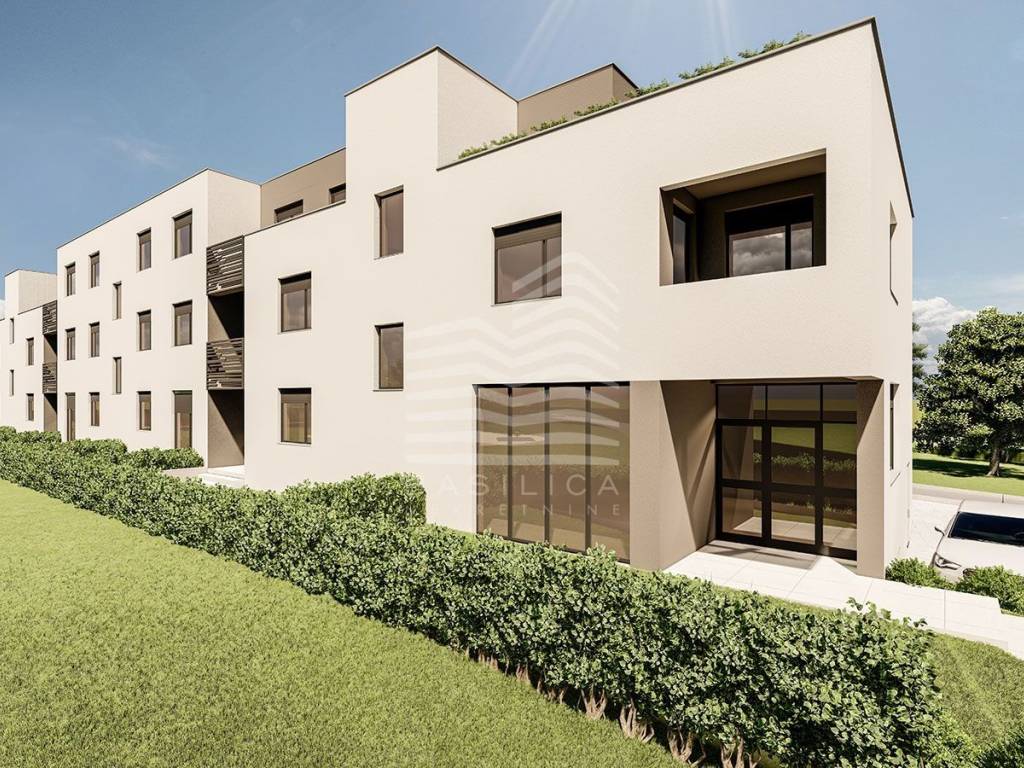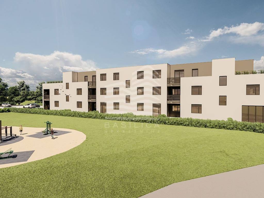 Zgrada sa tri odvojena ulaza koja čini cjelinu i sastoji se od dva stana po katu, osim zadnjeg kata gdje je penthouse. (ukupno 15 stanova i jedan poslovni prostor). U zgradi će biti stanovi: 2s od 48m2 do 51m2, 3s od 61m2 do 70m2, te 4s od 97m2 do 100m2. Prizemlje je sa vrtom, katovi sa lođom, te zadnji kat sa terasom.