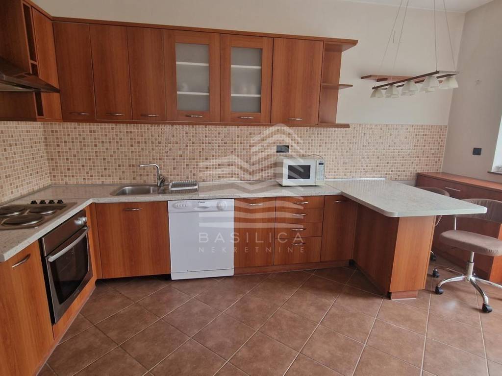 Kuća je u solidnom stanju, ima termofasadu, uređena i održavana. Prodaje se zajedno sa namještajem koji je uščuvan i u dobrom stanju. Kuhinja po mjeri u svakom stanu sa svim kućanskim uređajima, kao i kreveti, ormari po mjeri, te opremljen dnevni boravak. Ima i kamin i vanjski roštilj uz stan