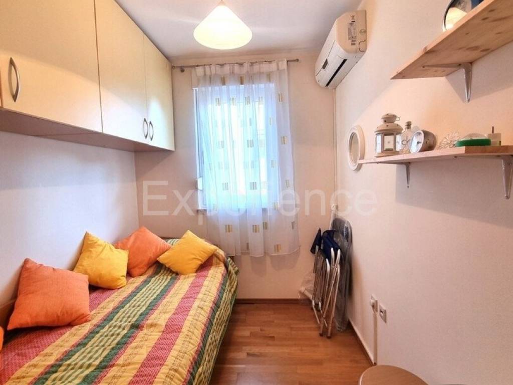 The 58 m2 apartment is located on the 1st floor of a smaller building of only 5 apartments, 500 m from the well-maintained beaches and city amenities. It was built in 2009. It has an excellent layout and orientation. It consists of an entrance hall, toilet, living area (living room, dining room and kitchen) with access to a balcony with a sea view. The sleeping area is completely separated by a hallway and a door, where there are two bedrooms (one smaller, the other spacious), and a bathroom with a window. Each room and living room have inverter air conditioning units, and there is also a chimney in the living room.