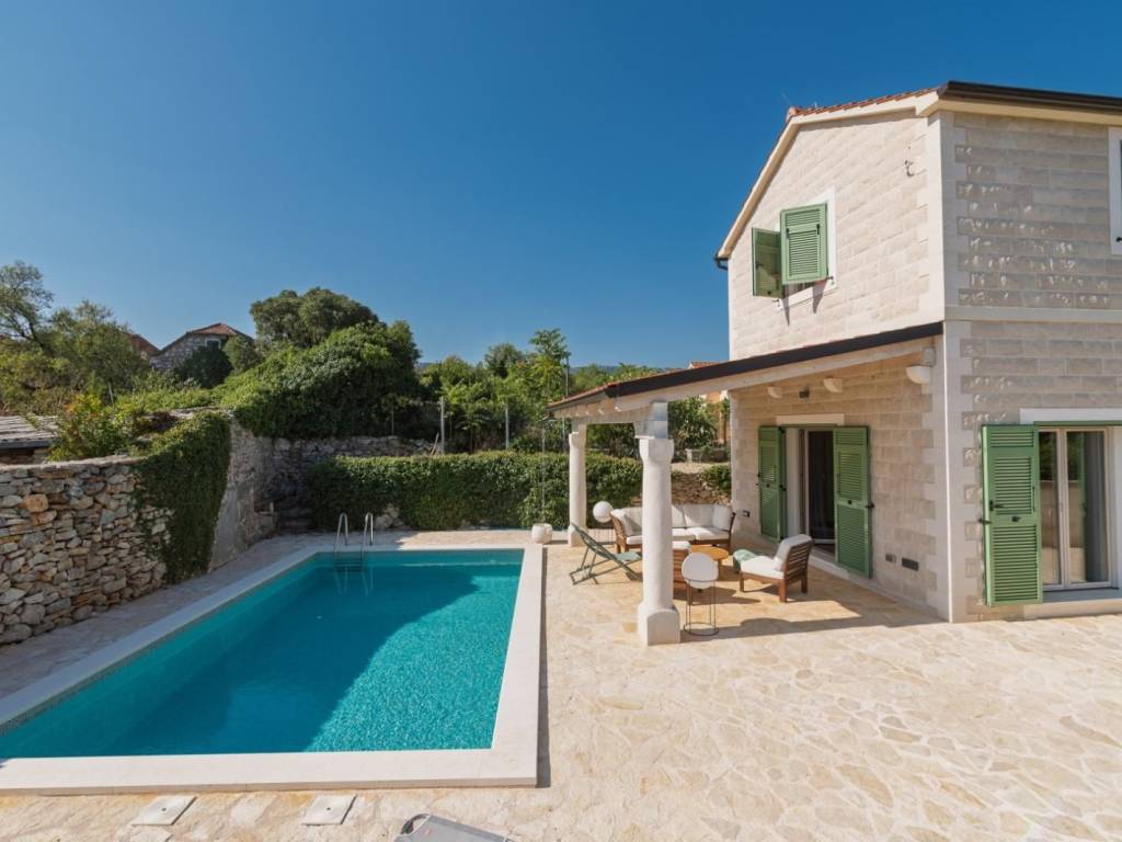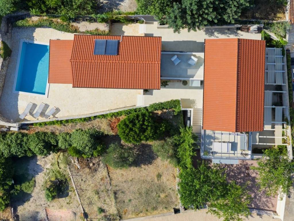 Prekrasna nova villa kvalitetno izgrađena u tradicionalnom stilu, smještena u centru Vrboske, nedaleko od rive i mora, ali na mirnoj lokaciji, ukupne bruto površine 463 m2, smještena na zemljištu površine 650 m2, sve okruženo starim suhozidima, koja se sastoji od: