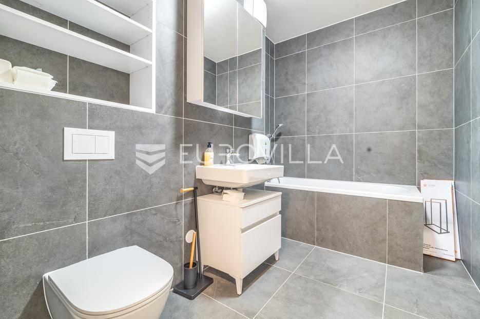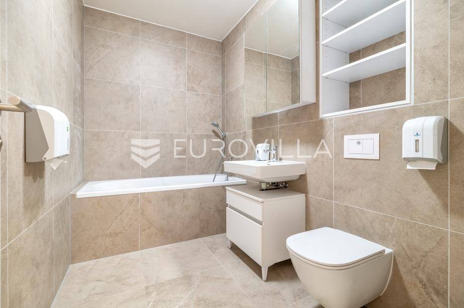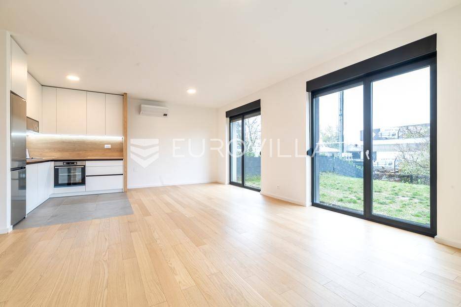 prostrane dnevne sobe s blagovaonicom s izlazom na vrtUkupna korisna površina iznosi 100 m2.Prostor ima i natkriveni vanjski dio koji uključuje lođu (8,80 m2), vanjsko spremište (1,29 m2) i terasu (5,60 m2), ukupno 15,69 m2. Dodatno, pripadaju mu dva uređena vrta ukupne površine 173,50 m2, idealna za opuštanje, privatnost ili prilagodbu poslovnim potrebama (npr. vanjski lounge prostor, dječji kutak, zeleni atrij).U cijenu najma uključena su dva garažna parkirna mjesta (13 m2 svako).Tehničke karakteristike objekta:Dizalice topline s podnim grijanjem u svim prostorijamaKlima uređaj u dnevnom boravkuTroslojni parket Galeković, prirodnog izgleda i visoke završne obradeKeramika prve klaseProtuprovalna i protupožarna ulazna vrataPVC stolarija visoke energetske učinkovitosti s aluminijskim roletamaFasada sa 16 cm termoizolacije za visoku energetsku učinkovitostLokacija - Blato (Zagreb):