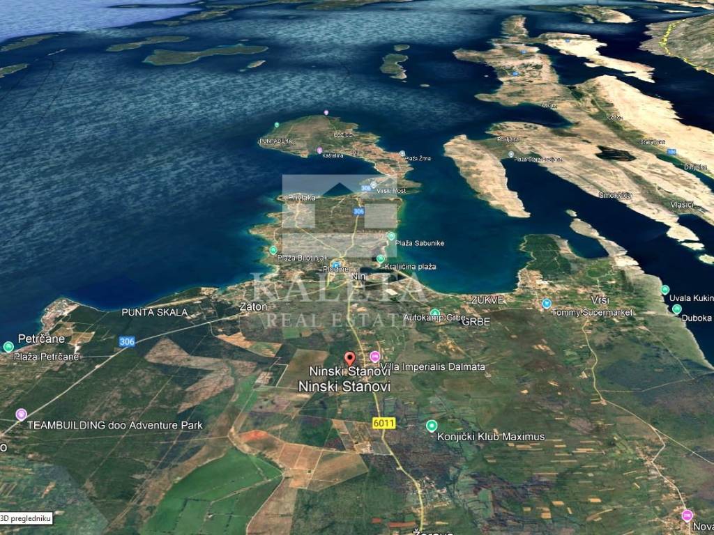 Das Grundstück befindet sich in einer ruhigen Seitenstraße, 200 m von der Hauptstraße entfernt, umgeben von Natur, in einem kleinen Ort in der Nähe der Stadt Nin.