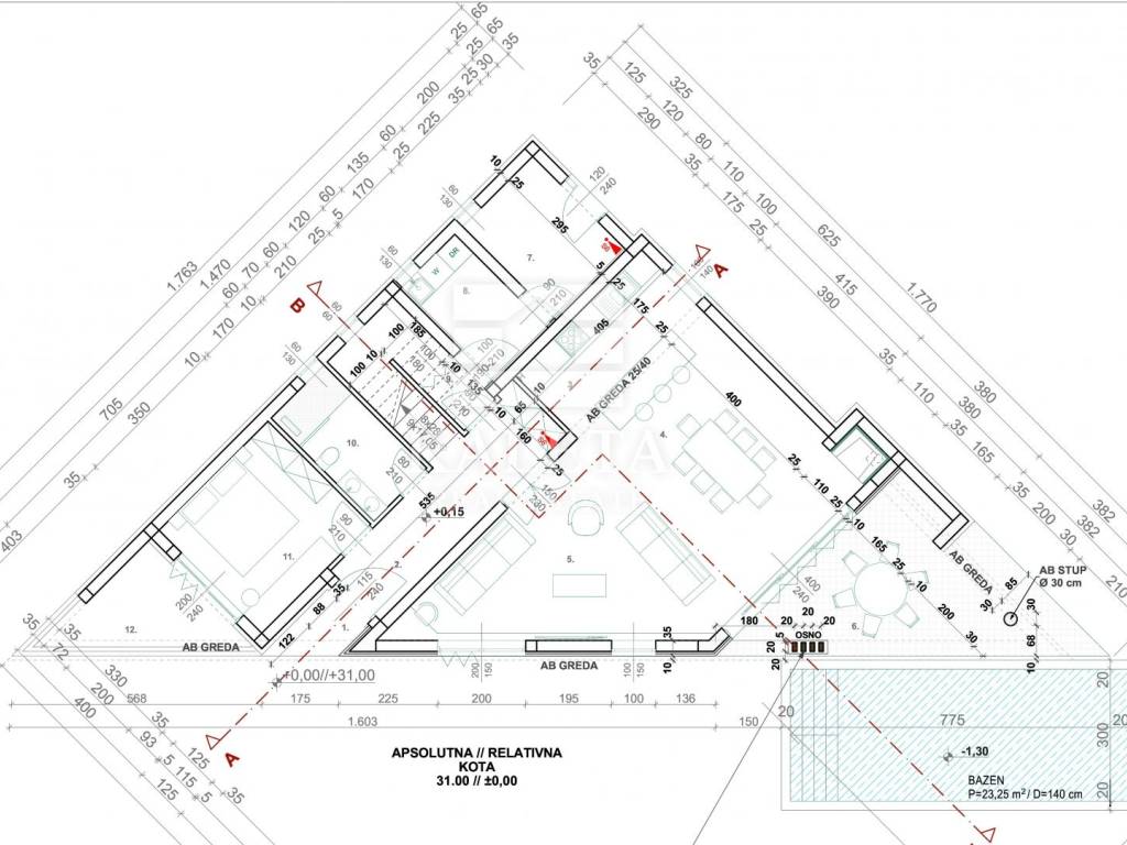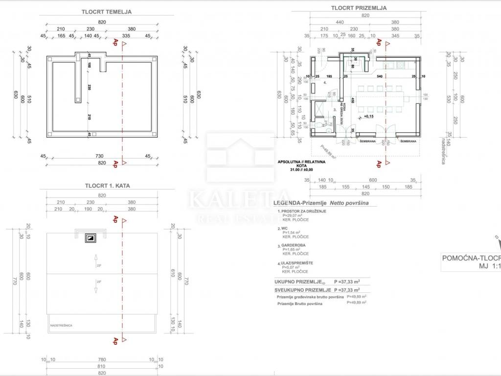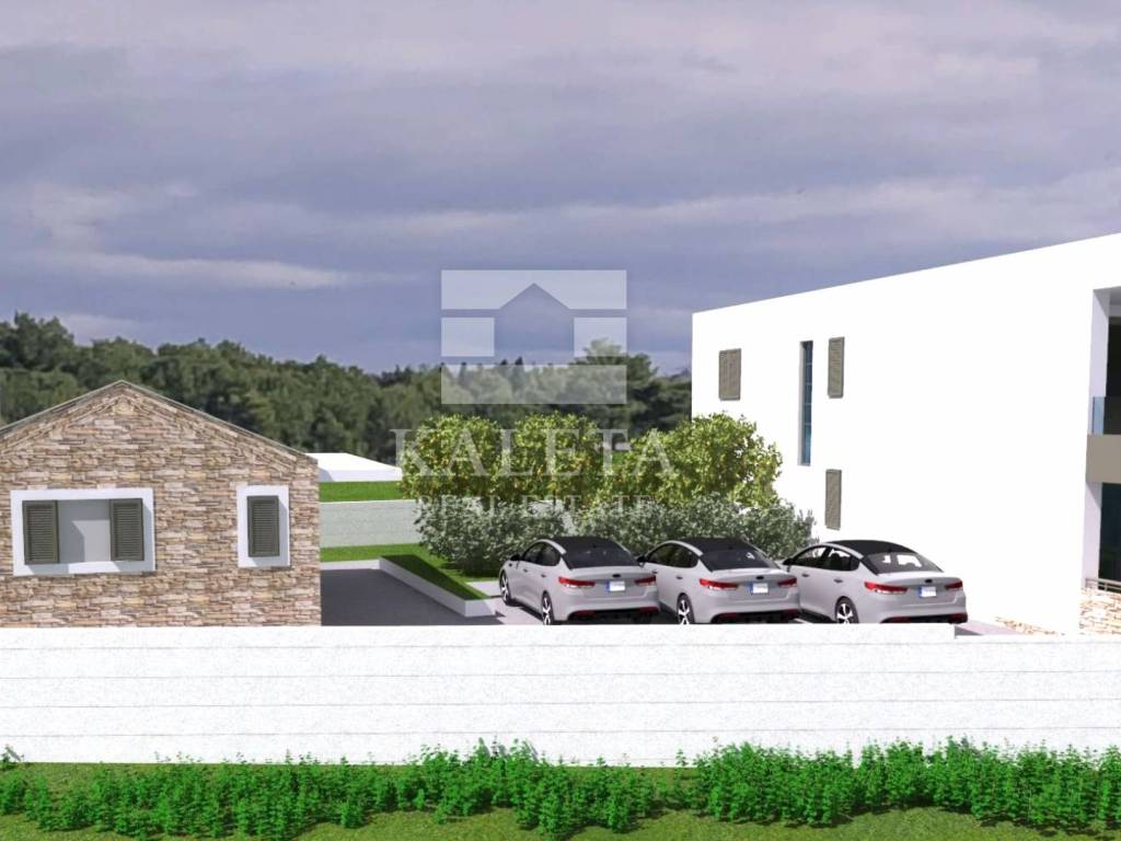 Neben dem Pool und den Parkplätzen ist auch der Bau eines Nebengebäudes mit einer Fläche von 37,33 m² vorgesehen, das alle Vorteile moderner Bauweise bietet, aber das äußere Erscheinungsbild einer traditionellen dalmatinischen Steinkonoba hat.