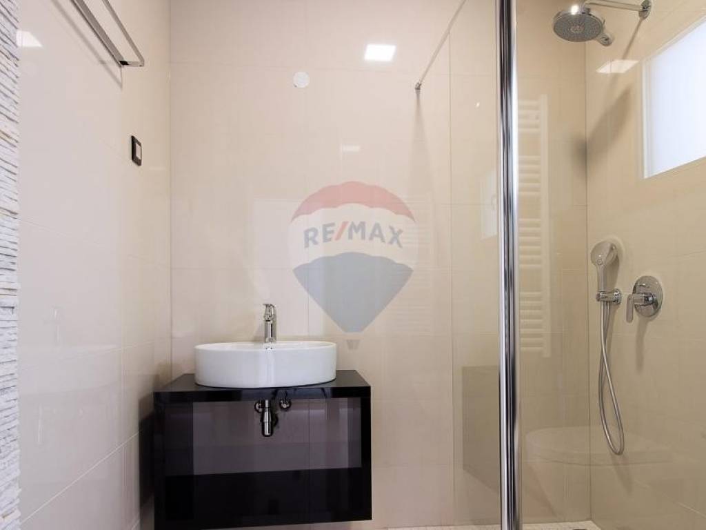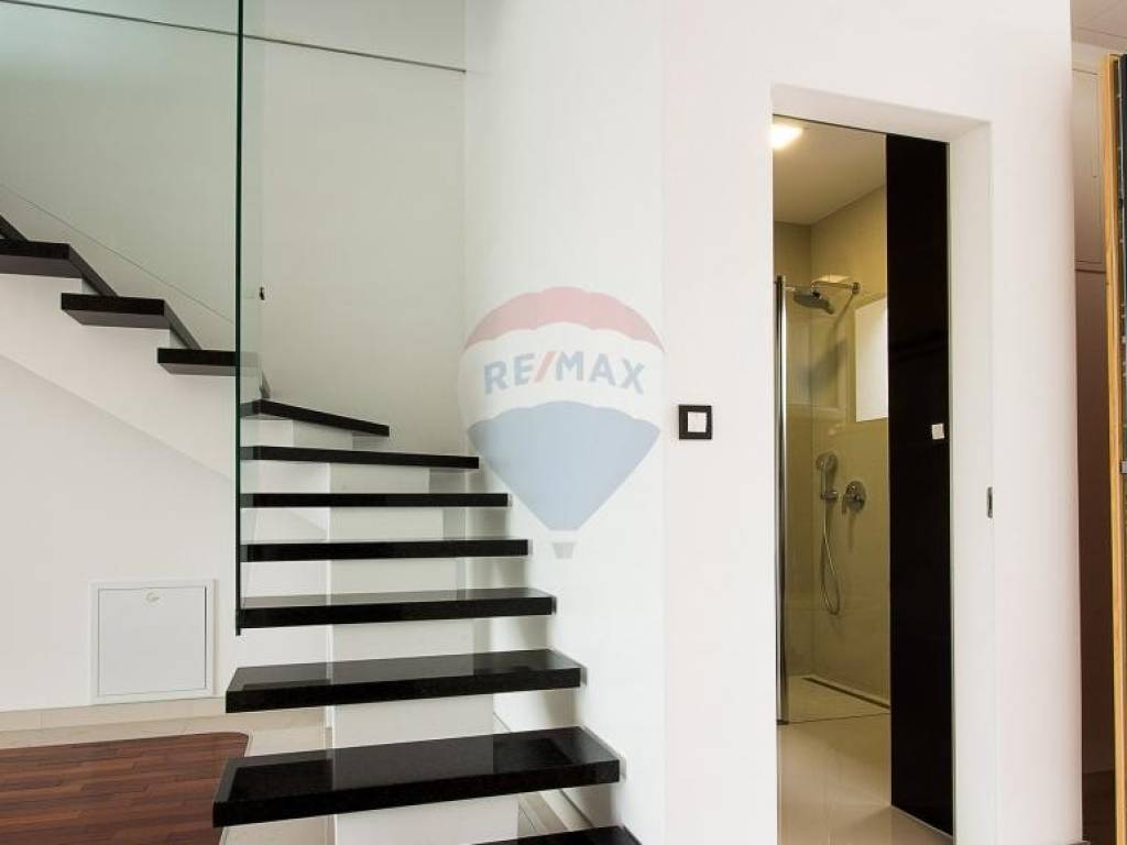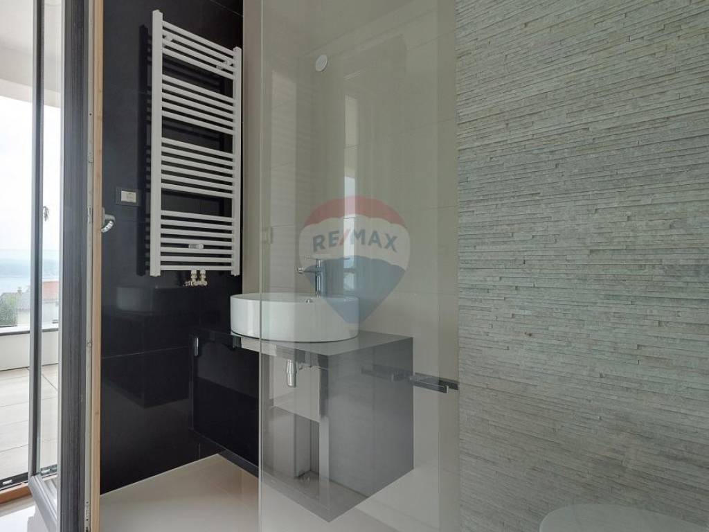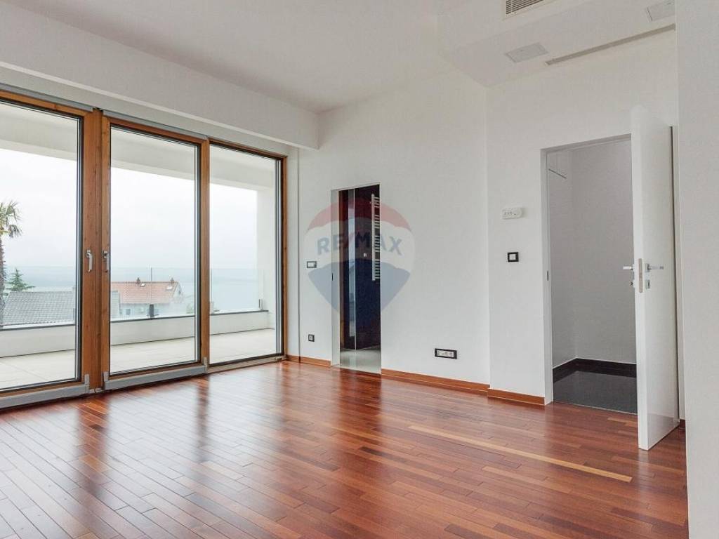 Crikvenica, dvoetažni stan koji se sastoji od prizemlja i kata. U prizemlju od 95m2 se nalazi dnevni boravak, kuhinja, blagovaona, ostava, kupaona, spavaća sobe, te terasa. Iz dnevnog dijela se izlazi u okućnicu u kojoj se nalazi bazen. Unutarnjim stubištem se dolazi na kat gdje se nalaze dvije spavaće sobe sa kupaonama, sauna, hodnik i terasa sa koje se pruža pogled na more. Stan je kvalitetno građen, vrlo funkcionalan, prostorije su prostrane, a za grijanje i hlađenje je ugrađena dizalica topline, te solarni paneli. Predviđena su i dva parkirna mjesta. Nekretnina se nalazi na mirnoj lokaciji, nedaleko centra i plaže.