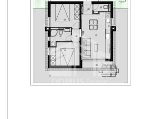 Die Wohnung besteht aus einem Eingangsbereich, einem Wohnzimmer, einer Toilette, einem Flur, zwei Schlafzimmern, einem Badezimmer mit Toilette und einer großzügigen Terrasse.