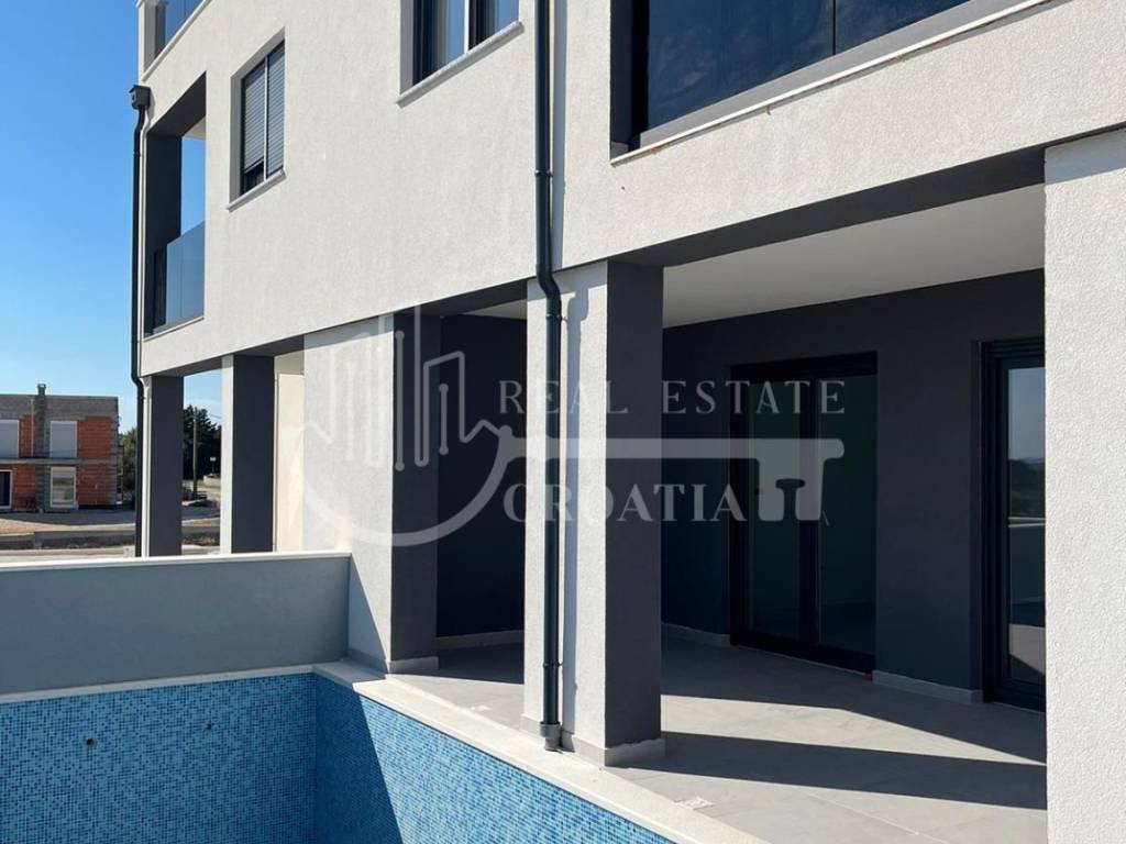 Prodajemo novu luksuznu duplex (dvojnu) kuću s privatnim bazenima, udaljenu svega 800 m od mora i pješčanih plaža (Vrsi Mulo, Ričine). Smještena u mirnom i slikovitom mjestu Vrsi, kuća nudi spoj modernog luksuza, prirodnog okruženja i izvrsne prometne povezanosti.