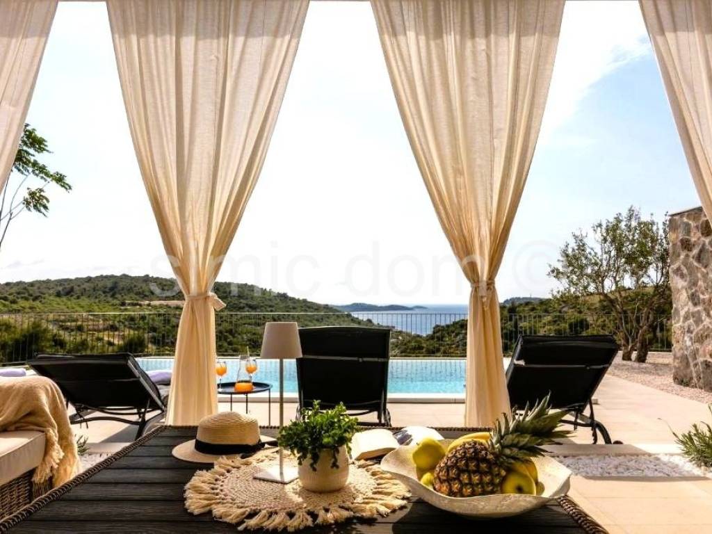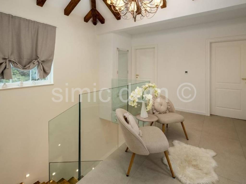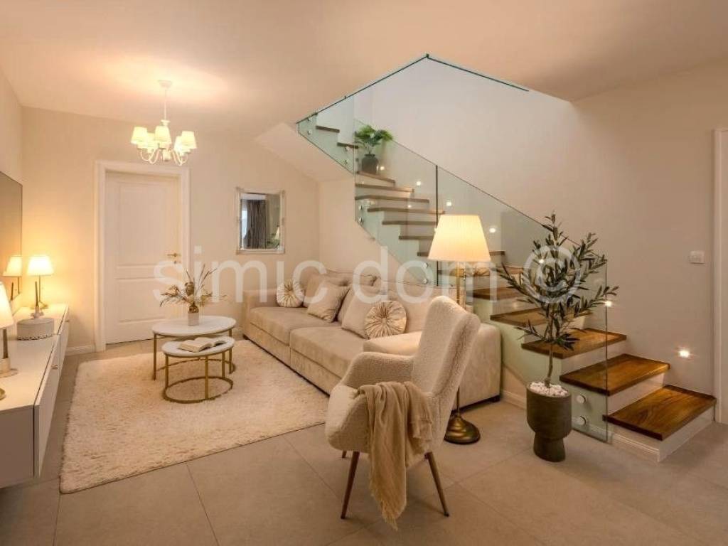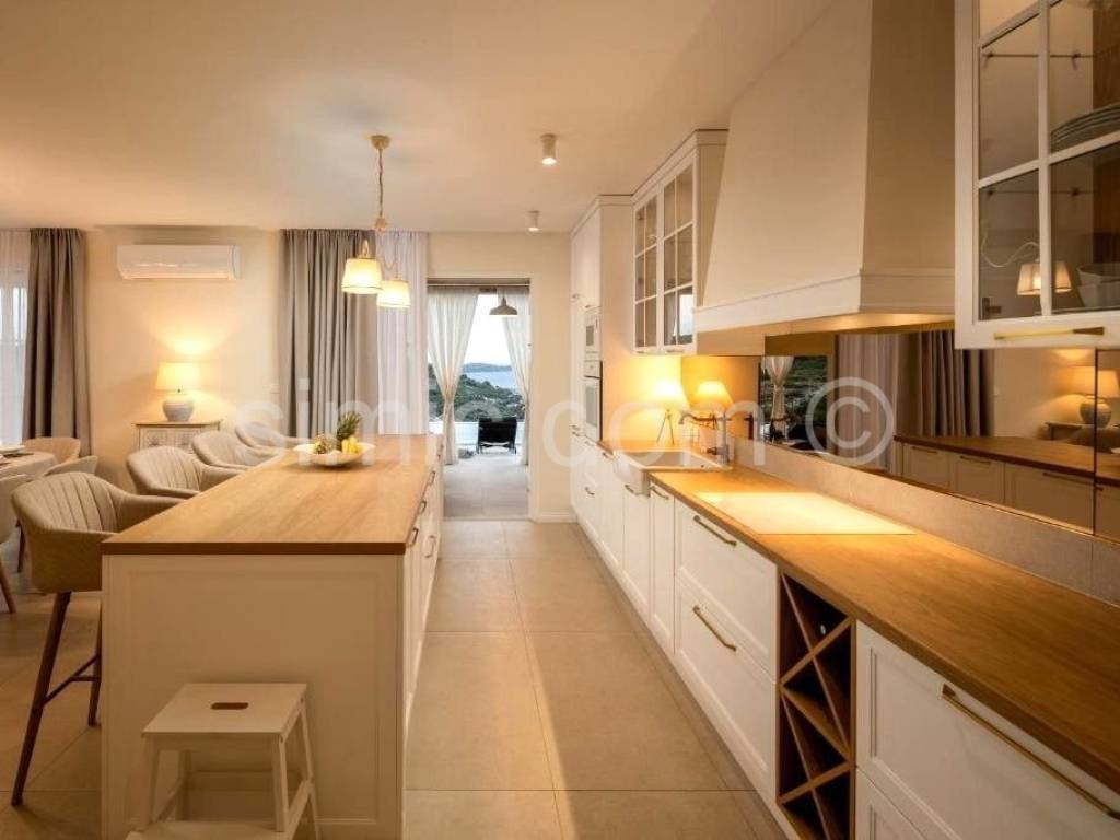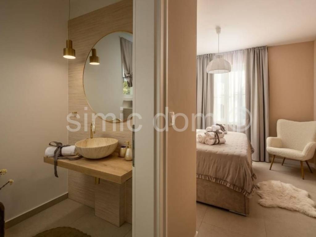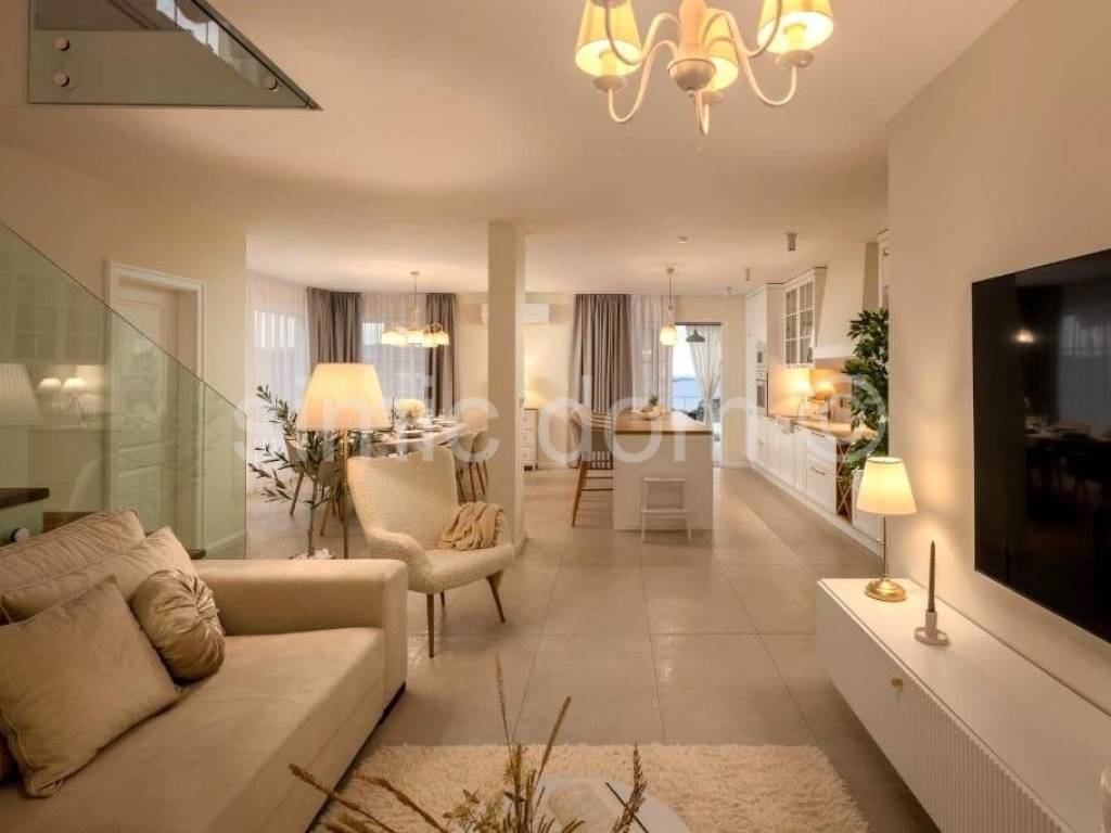Wir vermitteln beim Verkauf eine wahrhaft liebevoll eingerichtete Villa, die mit ihrem typisch dalmatinischen Flair besticht, einen herrlichen Meerblick bietet und von beruhigendem Grün umgeben ist. Die Villa liegt auf einem 920 m großen Grundstück, nur 800 m vom Meer entfernt. Das 2024 erbaute Haus ist ein energieeffizientes Gebäude mit Wärmepumpe, Fußbodenheizung, dreifach verglasten Fenstern und hochwertigen Keramikfliesen. Die gesamte Einrichtung ist im Preis inbegriffen. Die 230 m große Wohnfläche erstreckt sich über zwei Etagen und umfasst eine geschmackvoll gestaltete offene Küche mit Ess- und Wohnbereich sowie vier hervorragend ausgestattete Schlafzimmer, jeweils mit eigenem Bad. Zusätzlich gibt es ein Gäste-WC. Der wunderschöne Garten bietet einen großzügigen, 28 m großen, beheizten Swimmingpool mit Liegewiese und gepflegter Gartenanlage sowie einen großen Parkplatz. Es gibt außerdem eine Außenküche mit Kamin und einen Pavillon ideal zum geselligen Beisammensein und Genießen von Mahlzeiten mit Panoramablick. Diese wahrhaft charmante dalmatinische Villa liegt nur 2 km von Cafés und Geschäften, 900 m vom Strand und nur 7 km von Rogoznica entfernt.