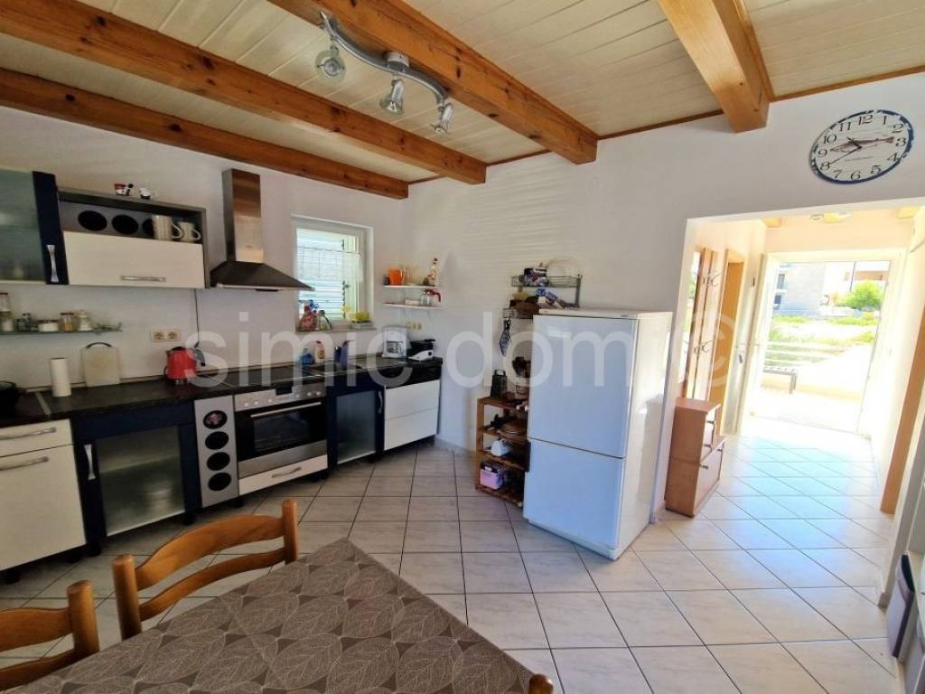 Zum Verkauf steht ein wunderschönes Einfamilienhaus in der Nähe von Rogoznica in Razanj. Das Haus liegt weniger als eine Gehminute von einem wunderschönen Kiesstrand mit türkisfarbenem Meer entfernt. Das Haus ist hochwertig gebaut, mit Styropordämmung, gepflegt und bedarf keiner größeren Renovierung. Ein wunderschöner Garten umgibt das Haus. Das Haus bietet viel Platz im Freien mit mehreren Sitzgelegenheiten und drei schönen Terrassen, eine davon mit herrlichem Meerblick. Das Haus befindet sich auf einem 420 m großen Grundstück und besteht aus zwei Wohnungen mit einer Gesamtfläche von 200 m. Jede Wohnung hat einen separaten Eingang. Die Wohnung im Hochparterre besteht aus Flur, Badezimmer, zwei Schlafzimmern, einem Wohnzimmer mit Küche und Esszimmer mit Zugang zur Terrasse. Die Wohnung im Obergeschoss verfügt über drei Schlafzimmer, ein Wohnzimmer, eine Küche, ein Esszimmer und ein Badezimmer. Alle Möbel sind im Preis inbegriffen. Im Hof befindet sich ein Nebengebäude, das als Sommerküche dient und einen Grillplatz bietet. Im Hof gibt es eine schöne Sommerküche, einen Grillplatz und einen Parkplatz für zwei Autos. Razanj ist ein kleines dalmatinisches Dorf, nur 10 Autominuten von Rogoznica entfernt und ideal für Familien, die einen ruhigeren Urlaub an Kiesstränden mit kristallklarem Meer verbringen möchten. Das Dorf bietet Annehmlichkeiten wie Cafés und Geschäfte, die das ganze Jahr über geöffnet sind, und es gibt auch einige Restaurants, die in den Sommermonaten geöffnet sind.