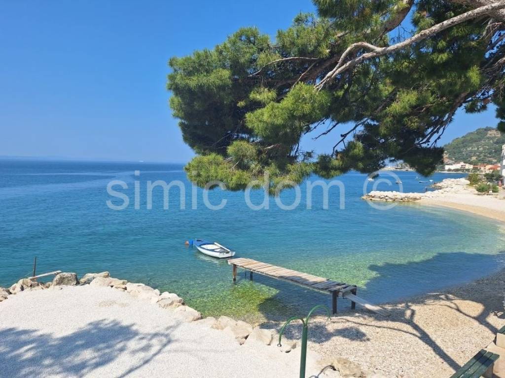 Wir vermitteln beim Verkauf eine sehr geräumige und hochwertig eingerichtete Maisonette-Wohnung in hervorragender Lage, nur 30 m von den wunderschönen Stränden der Riviera von Omis entfernt. Die Wohnfläche beträgt 126 m und erstreckt sich über das Erdgeschoss und den ersten Stock. Im Erdgeschoss befinden sich eine Garage, ein Abstellraum und ein WC. Im ersten Stock befinden sich zwei große Schlafzimmer, ein Badezimmer, ein zusätzliches WC und ein beeindruckendes Wohnzimmer mit Küche und Zugang zu einem großen Balkon. Von diesem Balkon aus genießen Sie einen wunderschönen Blick auf das Meer, Brač und die Strände. Die Wohnung befindet sich in ausgezeichnetem Zustand, wurde über die Jahre gepflegt und renoviert und wird komplett ausgestattet und mit sehr attraktiven Möbeln möbliert verkauft. Zahlreiche Annehmlichkeiten wie Restaurants und Geschäfte befinden sich in der Nähe. Omis erreichen Sie mit dem Auto in etwa 15 Minuten. Aufgrund des hervorragenden Zustands der Wohnung, der außergewöhnlichen Nähe zum Meer und der vielen Annehmlichkeiten bietet sich dies als hervorragende Gelegenheit zur Vermietung an. Der Eigentumsübergang ist abgeschlossen.