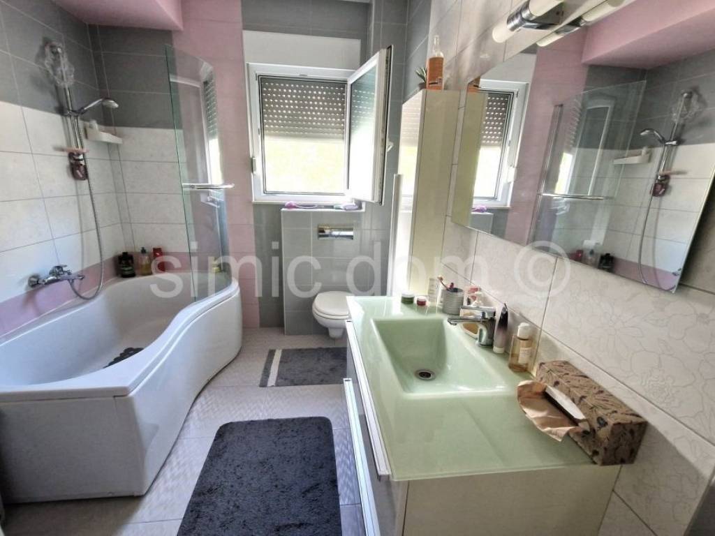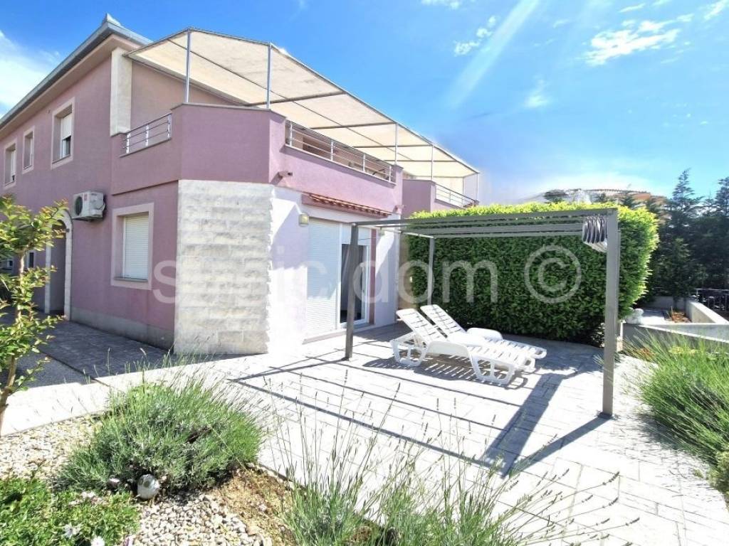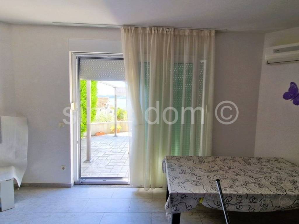 Zum Verkauf steht eine wirklich attraktive Immobilie nur wenige Schritte vom Kieselstrand auf Ciovo entfernt. Das Haus verfügt über einen äußerst großzügigen Garten von über 700 m2, der tadellos mit mediterranen Pflanzen geschmückt ist, und einen großen Parkplatz, der bequem Platz für 4-5 Autos bietet, sowie einen Grillplatz und ein Nebengebäude. Aufgrund der Grundstücksgröße besteht die Möglichkeit, das Haus um eine weitere Etage zu erweitern. Das Haus wurde 2009/2010 erbaut, verfügt über eine Bruttowohnfläche von 282 m2, bzw. 219 m2 Nettowohnfläche, und besteht aus zwei Etagen. Im Untergeschoss befinden sich zwei jeweils 59 m2 große Wohnungen mit zwei Schlafzimmern, einem Badezimmer und einer offenen Küche mit Wohnbereich, die Zugang zu einer gepflasterten Terrasse im Garten mit Meerblick hat. Im Obergeschoss befindet sich eine wirklich geräumige 100 m2 große Wohnung mit einer beeindruckend großen Eingangshalle, zwei Badezimmern, zwei Schlafzimmern, einer großen Küche mit Essbereich und einem Wohnzimmer, das auf eine Terrasse mit herrlichem Meerblick führt. Das Haus ist hervorragend ausgestattet, verfügt über eine Klimaanlage, eine Zentralheizung und wird komplett möbliert und ausgestattet verkauft, was im Preis inbegriffen ist. Dank seiner außergewöhnlichen Lage in der Nähe des Strandes und aller Annehmlichkeiten sowie der Größe des Grundstücks ist dies wirklich eine der seltenen Immobilien in der Gegend von Ciovo und eine außergewöhnliche Investitionsmöglichkeit. Eigentumsverhältnisse in Ordnung.