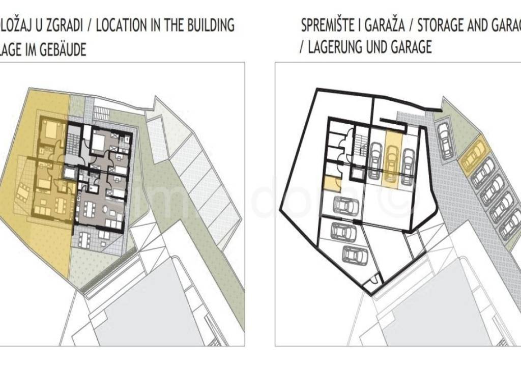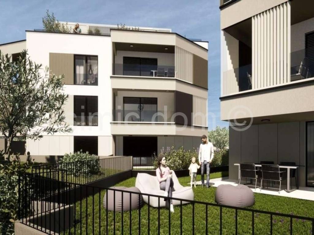 Zum Verkauf stehen Apartments in bester Lage in einem Neubau von außergewöhnlicher Bauqualität, nur 180 m von einem wunderschönen Strand entfernt. Das Gebäude befindet sich in einer ruhigen Gegend, ideal für einen Urlaub, mit einem gepflegten Strand und einer Promenade, einem kleinen Hafen, Restaurants, Cafés, öffentlichen Spielplätzen und nicht weit vom Zentrum von Zadar entfernt, dass etwa 5 km entfernt ist. Zu jeder Wohnung gehört ein Außen- und Garagenstellplatz sowie ein Abstellraum in der Tiefgarage. Der Käufer ist von der Grunderwerbsteuer befreit. Das Apartment B2 befindet sich im Erdgeschoss des Gebäudes, die Innenfläche das Apartment beträgt 53 m und es gibt außerdem eine 20 m große Terrasse und einen fast 99 m großen Garten. Mit sämtlichem Zubehör: Abstellraum, 2 Parkplätze, Garten und Terrassen verfügt dieses Objekt über eine Nettonutzfläche von 99,64m2. Es besteht aus einem Flur, einem Abstellraum, zwei Schlafzimmern, einem Badezimmer, einer Waschküche, einer offenen Küche mit Esszimmer und einem Wohnzimmer mit Zugang zur Terrasse. Der Standard der Materialien und der Ausstattung ist sehr hoch, wie die technischen Spezifikationen des Projekts bestätigen. Das Apartment Garten verfügt über ein eingebautes Bewässerungssystem. Besonders hervorzuheben sind das DAIKIN 3-in-1-Wärmepumpensystem, eine hervorragende technische Lösung für Fußbodenheizung, Kühlung und Warmwasserbereitung, Sicherheits- und Brandschutzeingangstüren, 14 cm Polystyrol Fassade, KONE-Aufzug, hochwertige Sanitärelemente und hochwertige dreischichtige Außen- und Innenschreinereiarbeiten. Die Wohnungen sind ab 2025 bezugsfertig.