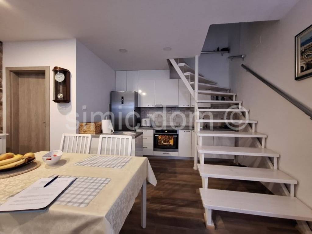 Wir vermitteln beim Verkauf ein schönes, renoviertes und sehr charmantes kleines Haus in einer äußerst attraktiven Lage im Zentrum von Baska Voda. Es handelt sich um eine Doppelhaushälfte mit einer Gesamtfläche von 66m2 und erstreckt sich über das Erdgeschoss und den ersten Stock. Im Erdgeschoss gibt es einen sehr schönen Innenhof, der derzeit als Essbereich, Wohnzimmer mit Küche und Toilette genutzt wird. Im Obergeschoss befinden sich ein Schlafzimmer mit Badezimmer, ein Eingangsbereich und ein schöner Balkon. Das Haus ist in ausgezeichnetem Zustand, erfordert keine Investitionen und wird voll ausgestattet und möbliert verkauft. Neben der unmittelbaren Nähe zum Meer möchten wir hervorheben, dass zahlreiche Geschäfte, Restaurants und andere Annehmlichkeiten in wenigen Gehminuten erreichbar sind, was dieses schöne Haus zu einer hervorragenden Wahl für ein touristisches Vermietungsgeschäft macht. Angesichts der Seltenheit solcher Angebote im Zentrum von Baska Voda ist dies eine fantastische Investition. Eigentumsverhältnisse in Ordnung.