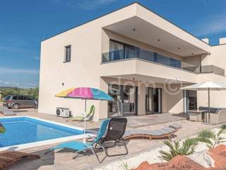Wir vermitteln beim Verkauf ein neu gebautes, geräumiges und luxuriöses Haus mit beheiztem Pool in sehr ruhiger Lage in der Nähe von Sibenik. Es handelt sich um eine Doppelhaushälfte, die aus einem Erdgeschoss und einem Obergeschoss besteht. Der Nettonutzwert der Wohnfläche beträgt 190 m, einschließlich aller Habseligkeiten des Hauses, während die Fläche des inneren Teils des Hauses 114 m beträgt. Das Haus ist komplett möbliert und mit hochwertigen Materialien ausgestattet, alles ist im Preis inbegriffen. Im Erdgeschoss gibt es einen Flur, ein sehr großes und helles Wohnzimmer mit Küche und Esszimmer, ein Schlafzimmer und einen Abstellraum. Das Wohnzimmer führt zum Hof, der über eine schöne Terrasse mit Sommerküche und Grill verfügt, was ein echter Vorteil ist. Im Obergeschoss befinden sich drei Schlafzimmer (eines davon mit eigenem Bad), ein weiteres Badezimmer und eine überdachte Terrasse mit wunderschönem Blick auf das Meer und die Umgebung. Auf der Dachterrasse, die einen herrlichen Blick auf die Inseln Zlarin und Tijat bietet, sind Strom und Wasser vorhanden, so dass der Käufer die Möglichkeit hat, die Terrasse zusätzlich zu gestalten und auszustatten. Der schöne Garten bietet außerdem einen Swimmingpool, einen kleinen Garten mit mediterranen Pflanzen und einen großzügigen Parkplatz. Das Haus ist 800 m von einem wunderschönen, intimen Strand entfernt und dennoch nur wenige Autominuten von allen anderen Annehmlichkeiten entfernt. Es ist eine ausgezeichnete Wahl sowohl für eine bereits etablierte Vermietung mit hervorragenden Ergebnissen als auch für ein ruhiges Familienleben und einen ruhigen Urlaub. Eigentum in Ordnung.