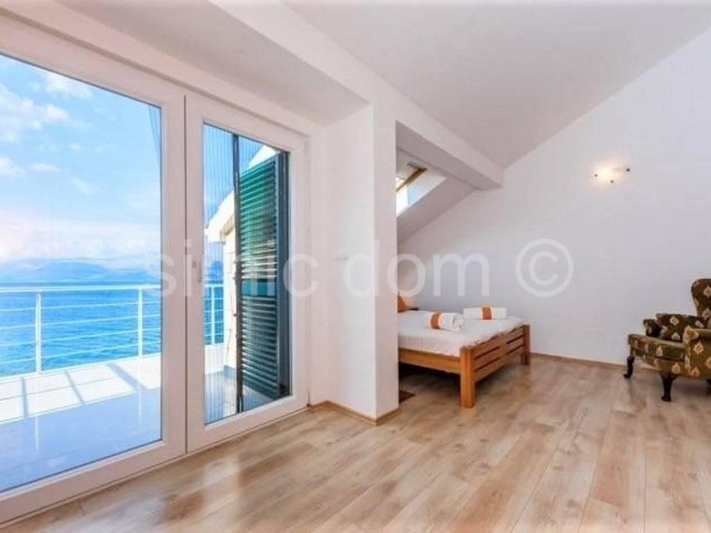 Zum Verkauf steht eine wunderschöne Villa in der ersten Reihe zum Meer, in einer ruhigen Umgebung, wo sich der Strand zwischen dem Haus und dem Meer erstreckt und dieser Bereich nur für Fußgänger zugänglich ist. Die Villa wurde auf einem Grundstück von 605 qm gebaut und hat eine Fläche von 197 qm. Das Haus besteht aus einem Erdgeschoss und einem ersten Stock, die Wohnzwecken dienen (183 qm), und es gibt auch einen Kellerbereich (Lagerraum) von 14 qm. Auf der Südseite des Erdgeschosses befindet sich eine großzügige überdachte Terrasse, auf der Sie den tiefen Schatten genießen können. Der innere Teil des Erdgeschosses besteht aus einer Eingangshalle, einer Küche, einem Esszimmer, einem Wohnzimmer, einem Badezimmer und einem Schlafzimmer. Das Wohnzimmer öffnet sich auf eine großzügige Terrasse mit herrlichem Blick auf das Meer. Eine Innentreppe führt in den ersten Stock, wo sich drei Schlafzimmer, zwei Badezimmer und eine Terrasse befinden. Das Haus ist klimatisiert, und das Wohnzimmer und die Küche im Erdgeschoss verfügen über eine Fußbodenheizung, sodass die Villa ideal für einen ganzjährigen Aufenthalt ist. Die Immobilie wird möbliert und ausgestattet verkauft. Der Außenbereich ist landschaftlich gestaltet und kultiviert. Im Hof gibt es einen Grill, einen Swimmingpool und Parkplätze für vier Autos. Eigentum in Ordnung.