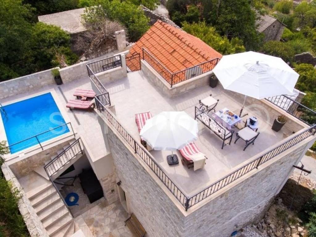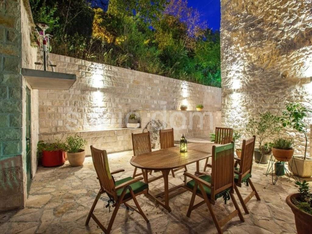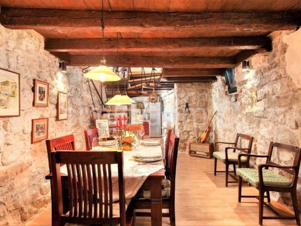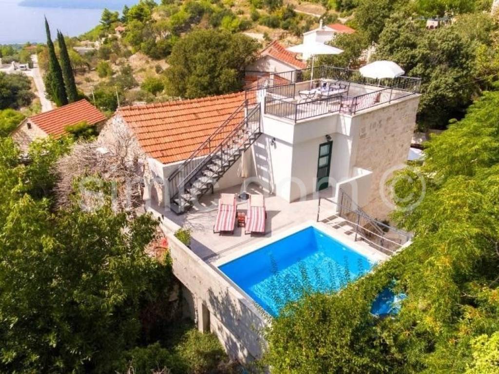 Wir vermitteln den Verkauf einer wirklich einzigartigen Immobilie, eines alten Steinhauses, das komplett renoviert wurde, um allen modernen Komfort mit vielen traditionellen Details zu bieten. Die Fläche der Villa beträgt 150 m und sie erstreckt sich über drei Etagen: Erdgeschoss, erster und zweiter Stock. Im Erdgeschoss gibt es einen kleinen Abstellraum, ein zusätzliches WC, eine Küche und ein Esszimmer. Dieser Teil führt zu einer schönen Terrasse mit Grill und einem kleinen Häuschen, das derzeit als Werkzeuglager dient. Die oberen Etagen des Hauses bieten ein wunderschönes Wohnzimmer, zwei Schlafzimmer und zwei Badezimmer. Von der zweiten Etage aus hat man Zugang zum Swimmingpool mit Liegewiese und einer Dachterrasse, die einen unglaublichen Blick auf das Meer, die Inseln und Biokovo bietet. Die Lage des Hauses ist sehr ruhig, ein Parkplatz ist ebenfalls vorhanden. Aufgrund der einzigartigen Kombination aus modernem Komfort, Stein und traditionellen Elementen eignet sich das Haus ideal für eine mehrmonatige Miete, aber auch als ruhige Familienoase. Es wird komplett möbliert und mit hochwertigen Geräten ausgestattet verkauft. Eigentum in Ordnung.