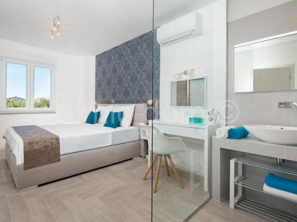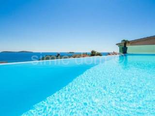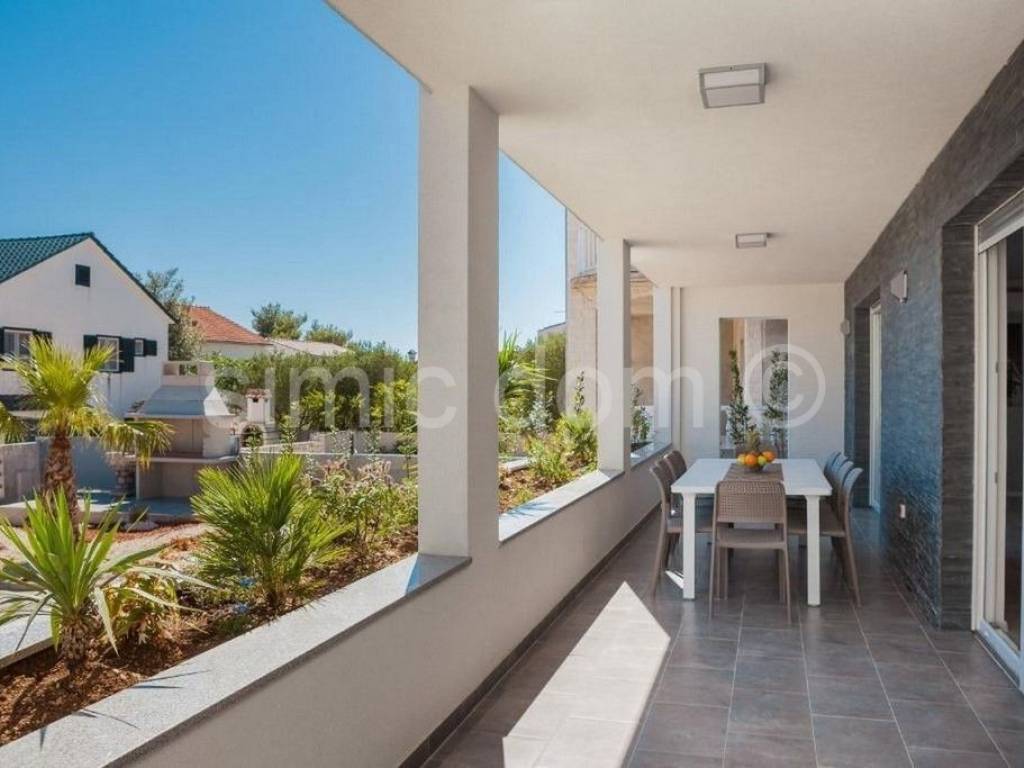 Wir vermitteln den Verkauf einer modernen Villa mit Swimmingpool nur 50 m von einem schönen Kiesstrand und nicht weit vom Zentrum von Rogoznica entfernt. Die Villa ist voll von beeindruckenden Einrichtungen und verfügt über eine ideale Anordnung der Zimmer, die sich über die Etagen der Villa verteilen, um sie so gut wie möglich zu genießen. Es besteht aus drei Etagen mit einer Gesamtbruttofläche von 328 m2, mit großzügigen Terrassen mit einer Gesamtfläche von 127 m2. Auf der zweiten Etage, ganz oben in der Villa, gibt es eine große Terrasse mit Infinity-Pool mit wunderschönem Blick auf das Meer, einen Whirlpool, eine Sauna mit Bad und einen großen Fitnessraum mit Billard und einer Küchenzeile. Das Erdgeschoss besteht aus einem Flur, zwei Badezimmern, einer Toilette, zwei Schlafzimmern, einer Speisekammer, einer Küche, einem Esszimmer mit Wohnzimmer und einem Ausgang zu einer großen Terrasse. Der erste Stock besteht aus drei Schlafzimmern, jedes mit eigenem Bad, einem Wohnzimmer und einer großen Terrasse. Die komplette Villa ist modern eingerichtet, klimatisiert, ausgestattet mit hochwertigen Materialien mit großen Glasflächen. Ein großer und gepflegter Garten mit Kamin schmückt dieses schöne Anwesen zusätzlich. All dies macht diese Villa ideal für Erholung und Genuss in den warmen Monaten. Parkplatz vorhanden. Besitz in Ordnung.