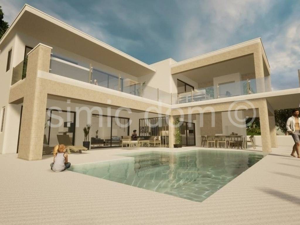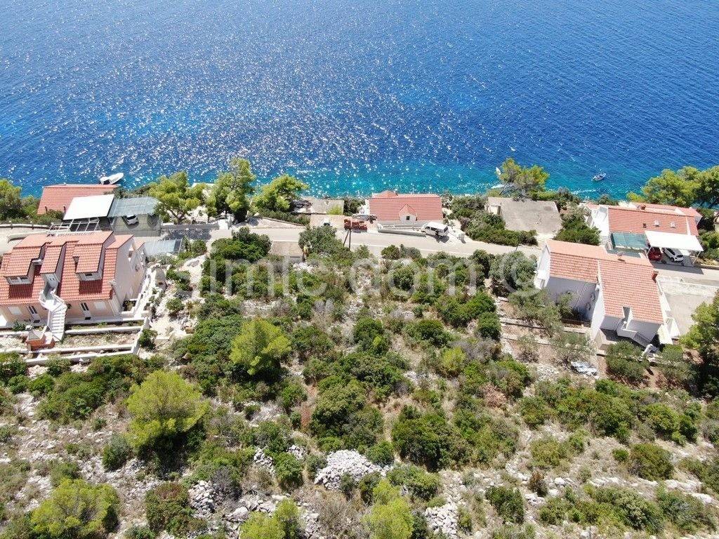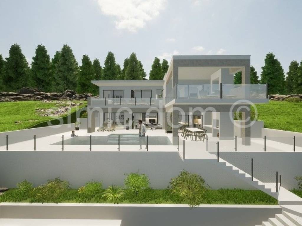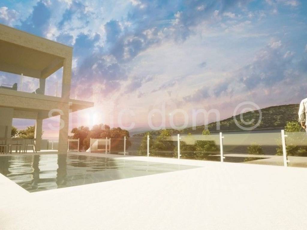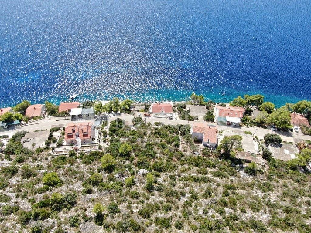 In Prizba auf der Insel Korcula steht ein hervorragendes Baugrundstück zum Verkauf. Das Grundstück hat eine Fläche von 592 m2, und der Verkaufspreis der Immobilie beinhaltet ein Bauprojekt, wie in den beigefügten Visualisierungen gezeigt. Das Gebäude würde aus Erdgeschoss und Obergeschoss bestehen und eine Fläche von 184 m2 haben. Das Erdgeschoss enthält ein Wohnzimmer, eine Küche mit Esszimmer, ein Schlafzimmer, einen Hauswirtschaftsraum, eine Toilette und eine überdachte Terrasse mit einer Außenküche von 93 m2. Im Obergeschoss befinden sich 3 Schlafzimmer mit eigenem Bad, ein nicht überdachter Balkon und eine überdachte Terrasse von 63 m2. Das Äußere würde eine Garage und einen 27 m2 großen Swimmingpool aufweisen, und die Etagen sind durch eine Innentreppe verbunden.