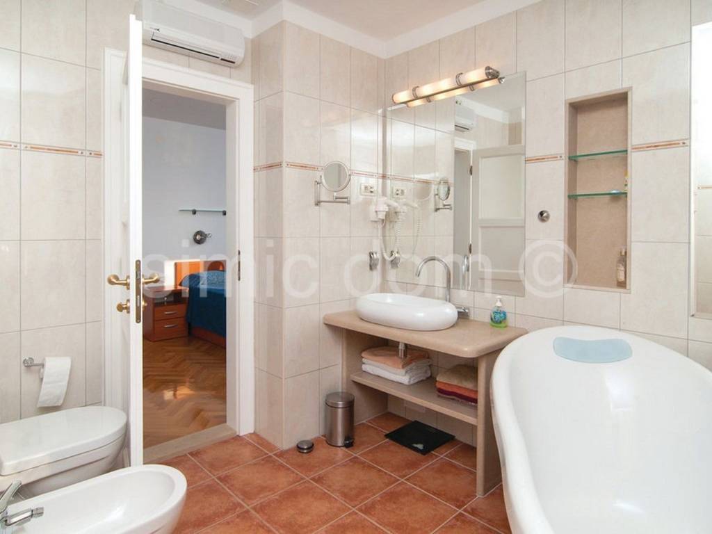 Zum Verkauf steht eine schöne freistehende Villa in einer ruhigen Umgebung mit viel Grün auf der Insel Brac. Die Villa hat eine Fläche von 147 qm und befindet sich auf einem Grundstück von 252 qm. Es besteht aus zwei Wohnungen mit separaten Eingängen, was ein großer Vorteil ist. Die Wohnungen sind durch eine Innentreppe verbunden. Im Untergeschoss befindet sich ein Apartment mit zwei Schlafzimmern, einem offenen Wohnbereich und einem Badezimmer. Die zweite Wohnung besteht aus dem Erdgeschoss, dem ersten und dem zweiten Stock; im Erdgeschoss befinden sich eine Toilette und ein offener Wohnbereich mit Kamin, im ersten Stock befinden sich zwei Schlafzimmer mit en-suite Badezimmern und der Dachboden wird als Abstellraum genutzt. Der Außenbereich im Untergeschoss verfügt über einen Innenhof auf der Ostseite mit einer finnischen Sauna, eine Waschküche und einen Garten sowie einen weiteren Innenhof auf der Westseite mit viel Grün, einem Grill und noch einem Essbereich im Freien. Das Äußere im Erdgeschoss verfügt über einen schönen Pool, einen Innenhof und einen weiteren Essbereich im Freien. Das Eigentum ist ordentlich. Die Standardgeschäftspolitik unserer Immobilienagentur besteht darin, eine Besichtigung der Immobilie zu organisieren, nachdem der Kunde unseren Standardagenturvertrag unterzeichnet hat. Die Unterzeichnung dieser Vereinbarung ist eine Grundvoraussetzung für weitere Aktivitäten im Zusammenhang mit dem Immobilienkauf, die auf dem Immobilienmaklergesetz und dem Datenschutzgesetz beruhen.