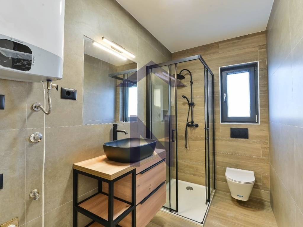 U gradnji koristili su se kvalitetni materijali, s ciglenim termo blokom i fasadom obloženom termoizolacijom od stiropora debljine 10 cm. Energetski razred A+.Podovi ovog stana su obloženi kombinacijom keramičkih pločica (hodnika, kuhinja, kupaonice i terasa) i laminata (dnevni boravak i spavaće sobe).
