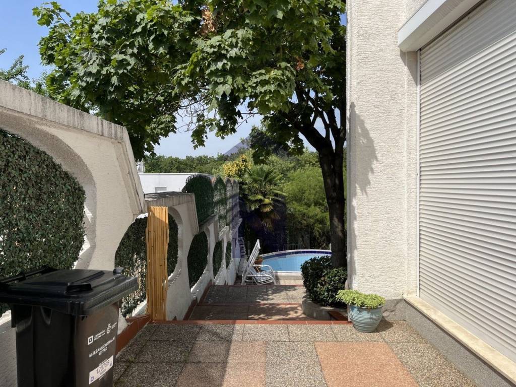 Vanjski bazen je iza kuće nakon kojeg se dolazi do gostinjske kuće od 80m2, koja se sastoji od dnevne sobe i kuhinnje, a na katu je kupaona i dvije sobe od kojih je jedna prolazna.