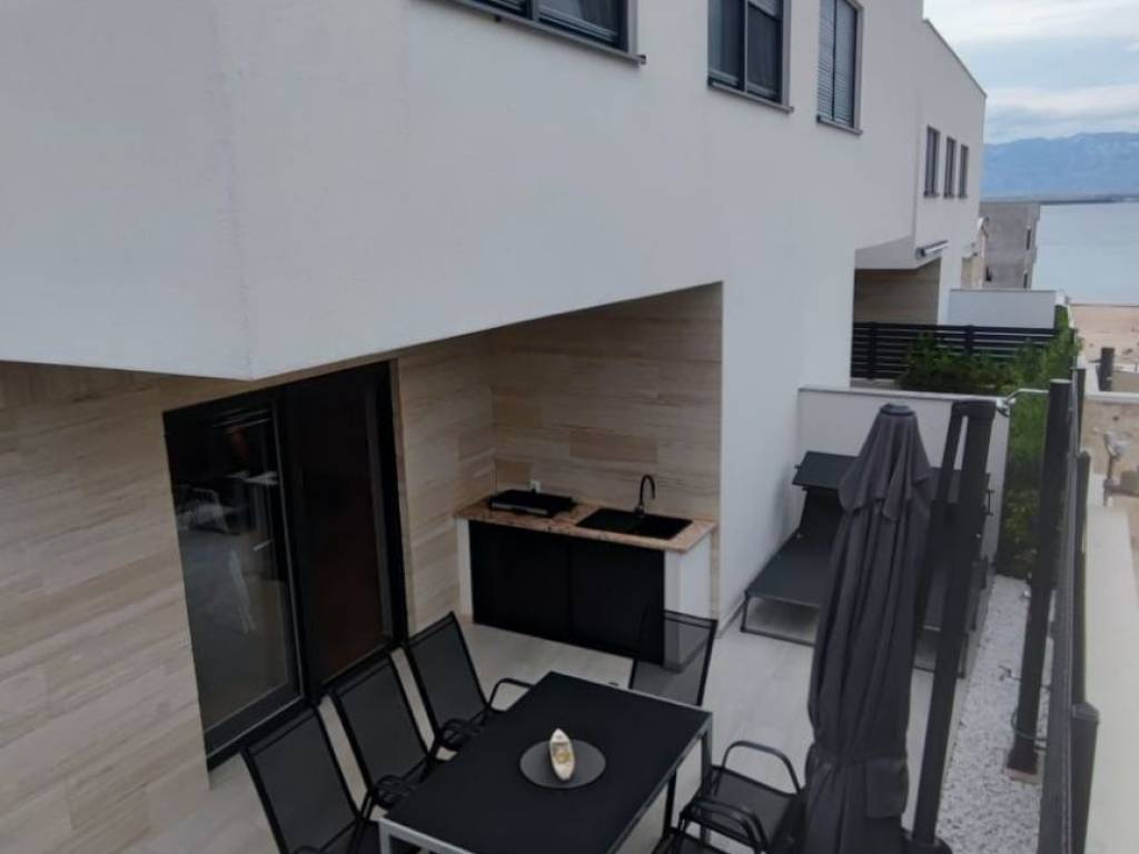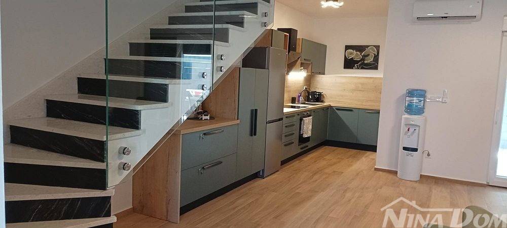 Wunderschön eingerichtetes Ferienobjekt, bestehend aus Erdgeschoss und Obergeschoss mit einer Wohneinheit. Erdgeschoss: Eingangsbereich, Wohn- und Esszimmer, Küche, WC, schöne Terrasse mit Außenküche und Grill, Innentreppe mit Abstellraum darunter. Obergeschoss: drei Schlafzimmer, zwei Badezimmer, Loggia mit Meerblick. Das gesamte Objekt ist klimatisiert und verfügt über einen Kamin. Es ist komplett mit hochwertigen Möbeln und Geräten möbliert und wird so verkauft. Schön gestalteter Garten mit Parkplätzen. 80 Meter vom Meer und Strand entfernt.