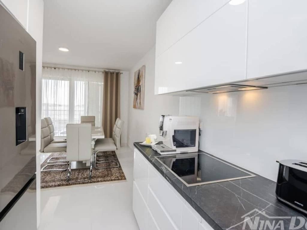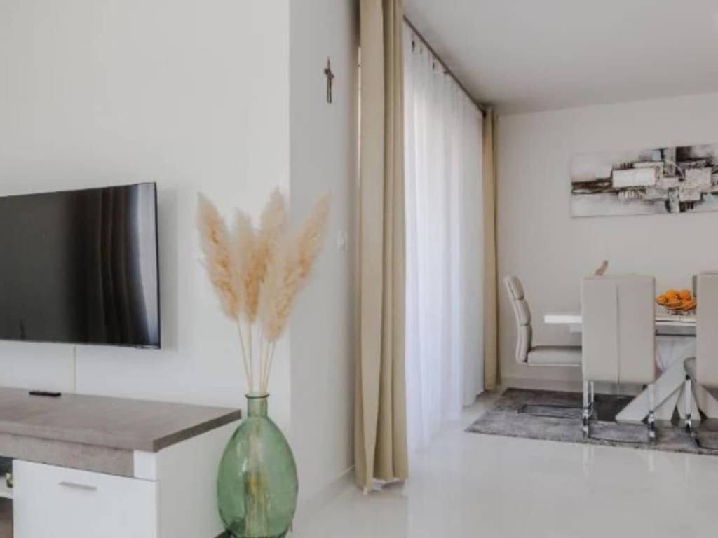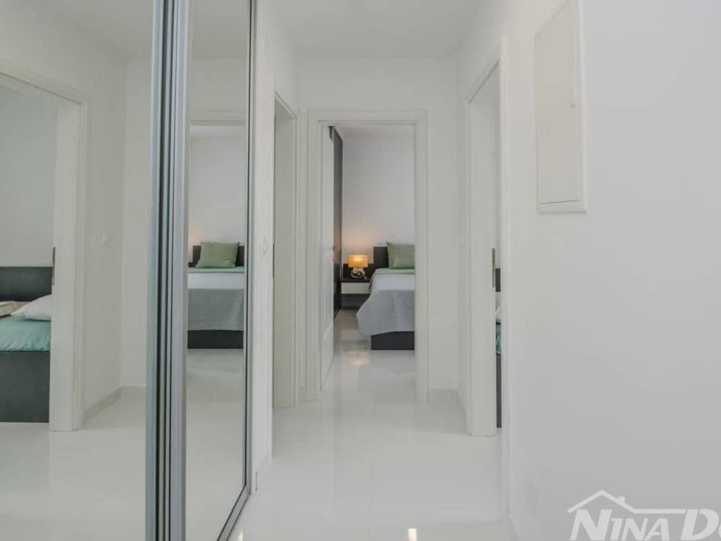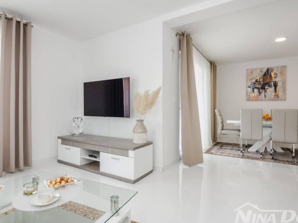 Das Mehrfamilienhaus besteht aus drei identischen Wohneinheiten. Erdgeschoss, 1. und 2. Stock. Alle Wohnungen sind identisch und bestehen aus einem Flur, zwei Schlafzimmern, Küche, Wohn- und Esszimmer, Bad sowie Terrasse oder Loggia. Klimaanlage, Ausstattung und aktuell touristisch kategorisiert. Der Garten ist schön gestaltet, gefliest und pflegeleicht. Jede Wohnung verfügt über einen eigenen Stromanschluss und einen 17 m großen Wassertank. Es handelt sich um ein Stockwerkeigentum mit separaten Wohnungen und Parkplätzen für jede Wohnung. Das Gebäude wird komplett verkauft (möglicher Kauf durch drei Freunde, Verwandte o. Ä.). Es liegt 240 m vom Meer und Strand entfernt. Ein Geschäft und eine Bäckerei sind 200 m entfernt.