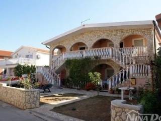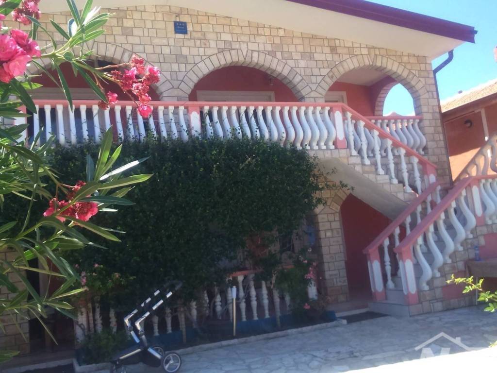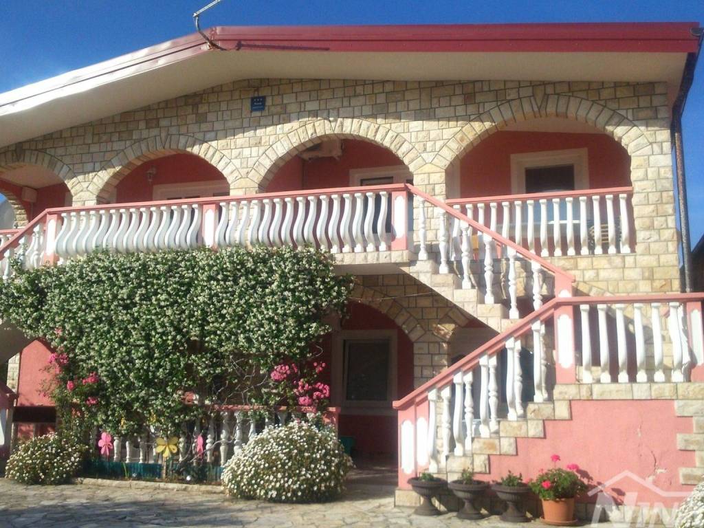Apartments-Immobilie, bestehend aus einem Erdgeschoss und einem Obergeschoss. Erdgeschoss: Zwei Apartments, jedes mit einer überdachten Terrasse, einer Küche mit Essbereich, zwei Schlafzimmern und einem Badezimmer. Obergeschoss: Über eine äußere Treppe auf beiden Seiten des Hauses zugänglich, befinden sich auch im Obergeschoss zwei identische Apartments, jeweils mit zwei Schlafzimmern. Alle Einheiten sind komplett eingerichtet, klimatisiert und werden derzeit für touristische Zwecke genutzt (saisonale Apartmentvermietung). Das Grundstück ist gepflegt und pflegeleicht, mit Parkplätzen. Hinter dem Haus befindet sich ein Abstellraum. Das Wasser wird durch einen Wassertank bereitgestellt, und das Meer und der Strand sind nur 50 Meter entfernt. Der Strand ist für alle Altersgruppen geeignet und bietet zahlreiche Einrichtungen. In unmittelbarer Nähe befinden sich ein Geschäft, ein Restaurant und eine Konditorei.