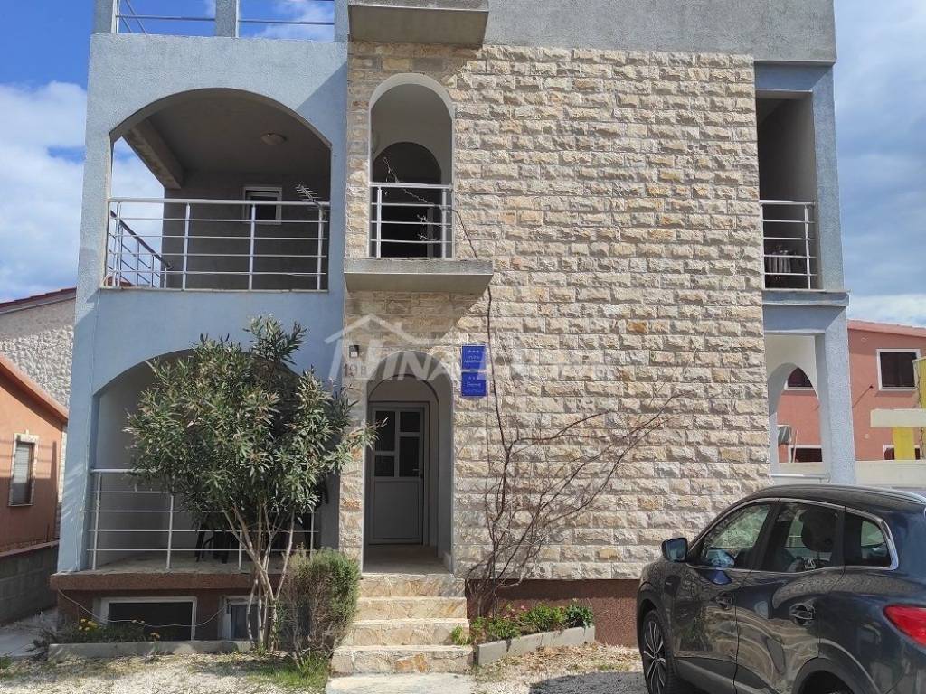 Prizemlje: apartman s dvije spavaće sobe, kuhinja s dnevnim boravkom kupaona i lijepa natkrivena terasa.
