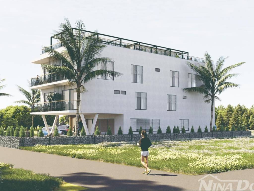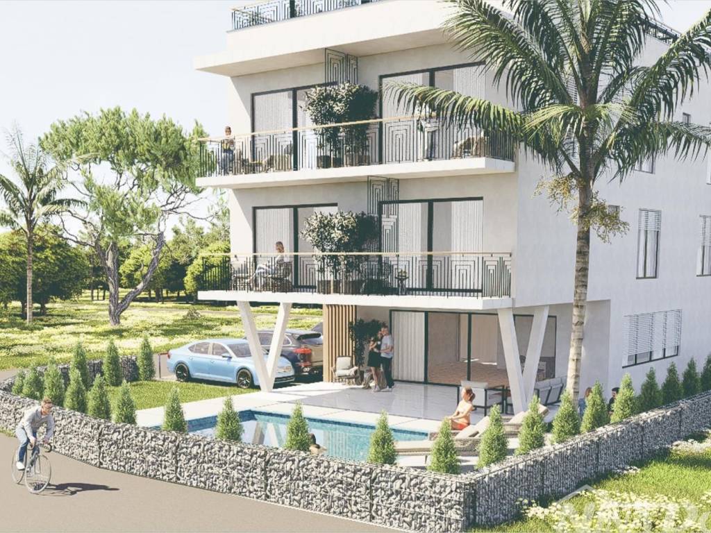 PRIVLAKA - TROSOBAN APARTMAN 170,90M2 - BLIZINA PLAŽE Prodaje se apartman NOVOGRADNJA u prizemlju s 3 spavaće sobe , kupaonicom , toaletom , dnevnim boravkom te kuhinjom ukupne stambene površine 120 m2. U nastavku se prostire terasa površine 47,5 m2 s okućnicom od 202 m2, ukupne bruto površine 404,60 m2. U sklopu okućnice se nalazi vanjski bazen.