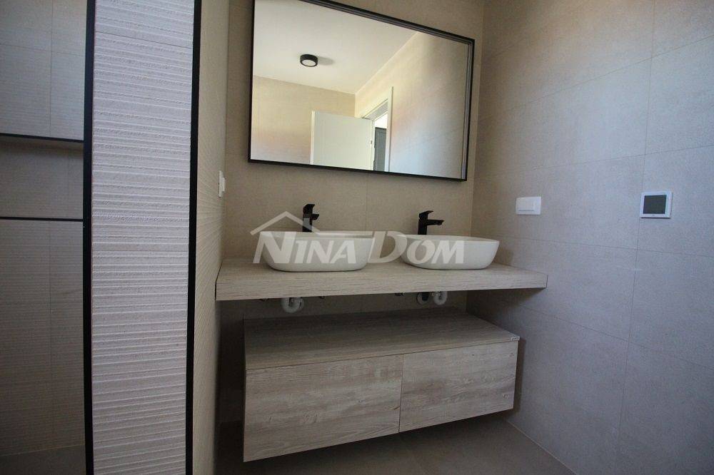 U ponudi su tri apartmana potpuno identični, opremljeni hans grohe sanitarijama, ratificirane dizajnerske talijanske pločice, protuprovalnim vratima, roletne električne, komarnici na svim otvorima, klima uređaji u svim sobama i dnevnom boravku. Podna grijanja u cijelom apartmanu s paljenjem preko wf mreže.