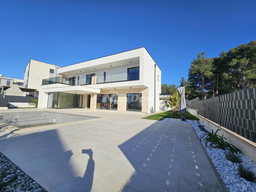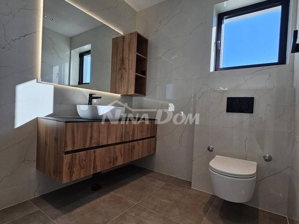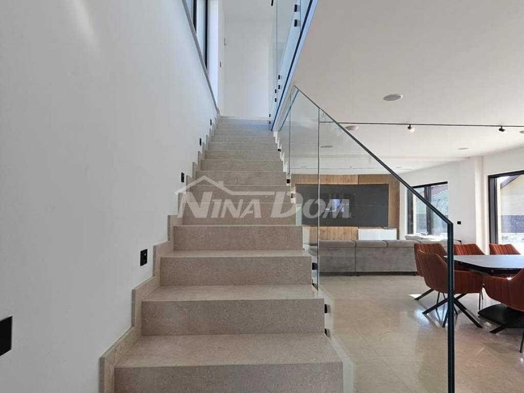 Prodaje sew luksuzna villa na putu Nina u Zadru.Nalazi se na mirnoj i tihoj lokaciji,okružena zelenilom,a opeta blizu svih sadržaja potrebnih za ugodan boravak.Prostire se na dvije etaže,prizemlje i kat.U prizemlju se nalaze ulazni hodnik,tehnička soba,kupatilo,sauna,te soba predviđena za fitness,sobu za relaksaciju,prostrani dnevni boravak sa kuhinjom i blagovaonom,te stubište koje vodi na kat.Na katu se nalaze tri prostrane spavaće sobe,svaka sa svojim kupatilom i ugradbenim ormarima.Iz svih soba se izlazi na prostranu terasu sa koje se pruža pogled na otoke.Cijela kuća je puna svijetlosti zbog velikih staklenih površina.Opremljena je dizalicom topline za grijanje i hlađenje,podnim grijanjem,video nadzorom,villeroy & boch sanitarijama,vrhunskom,minimalističkom alu stolarijom Cortizo,touch prekidačima itd.Na dvorištu se nalazi bazen veličine 32,40 m2 koji je opremljen i dizalicom topline.Cijeli vrt je pokriven automatskim navodnjavanjem.Kuća se prodaje sa svim namještajem.Za sva dodatna pitanja i obilazak,stojimo na raspolaganju.