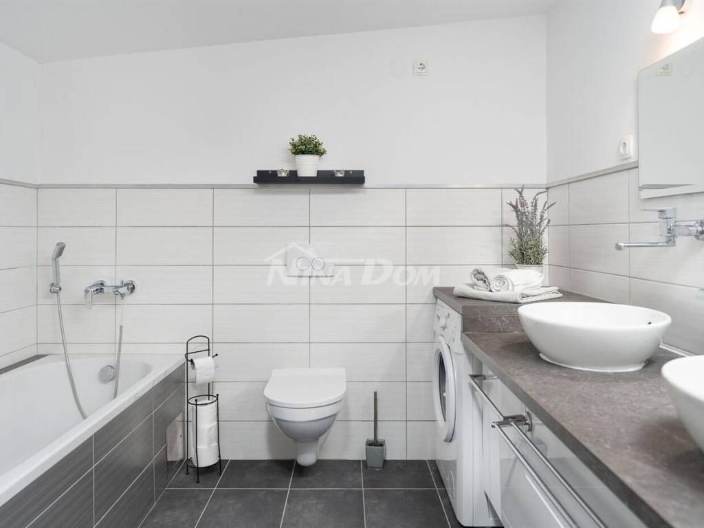 Sve prostorije su klimatizirane, podno grijanje, toplotna pumpa. Dimnjak priključak u dnevnom boravku za peć na kruta goriva ili kamin.