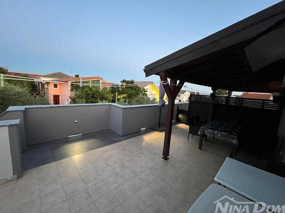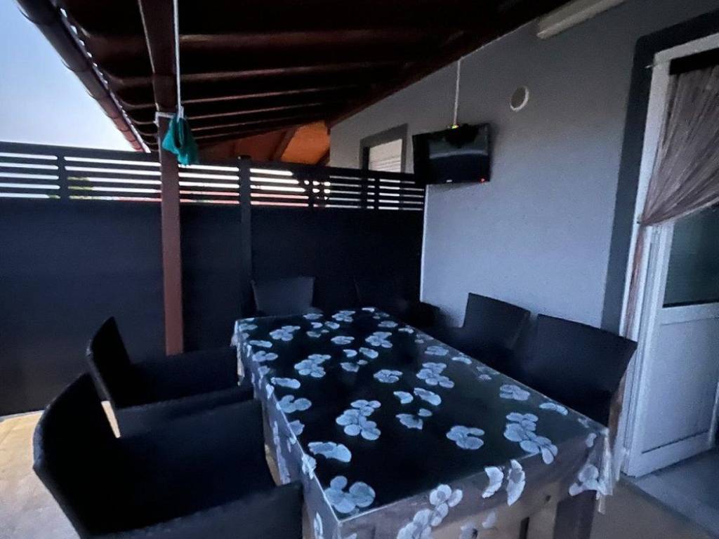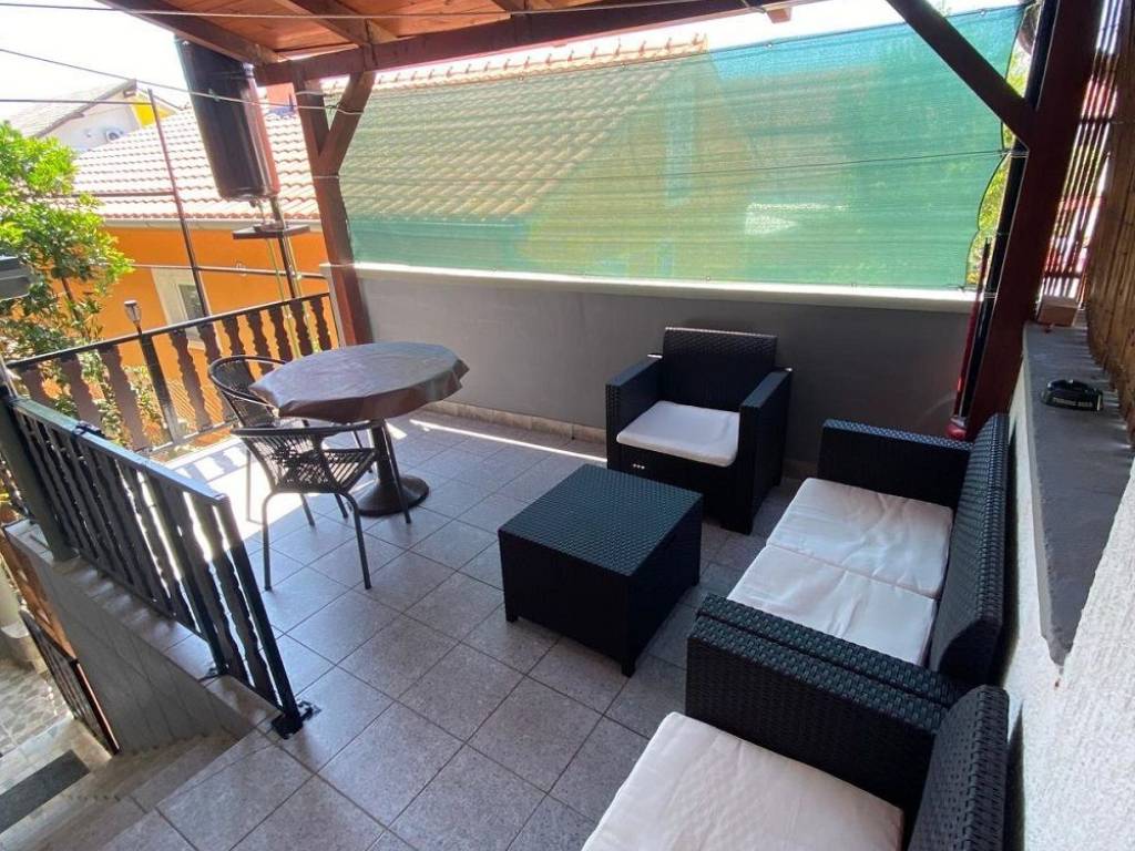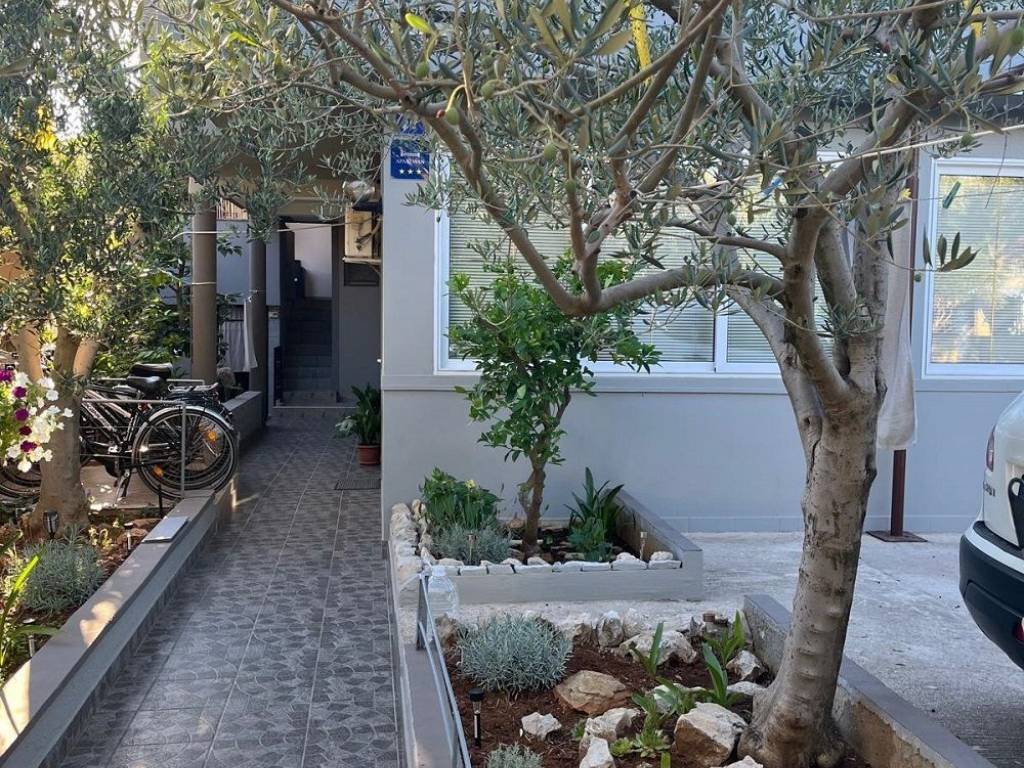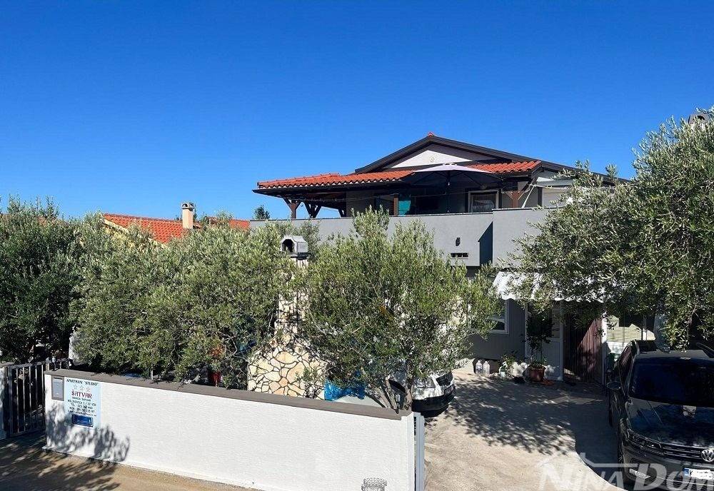 Južna strana otoka Vira 200 metara od plaže 300,43 m2 bruto građevinske površine izgrađena na 341 m2 zemljišta. Prizemlje: tri spavaće sobe, kupaona, wc, kuhonja blagovaona i dnevni boravak u sklopu ostakljene netkrivene terase sa kliznim alu stijenama. U prizemlju se nalazi dodatni studio apartman. Na katu: dva dvosobna apartmana. Klimatizirani. Nekretnina je spojena na gradsku vodu i kanalizaciju, + cisterna i bušeni bunar. U prizemlju je provedeno centralno grijanje na kruta goriva. Okućnica uređena s parkirnim mjestima.