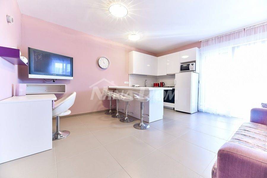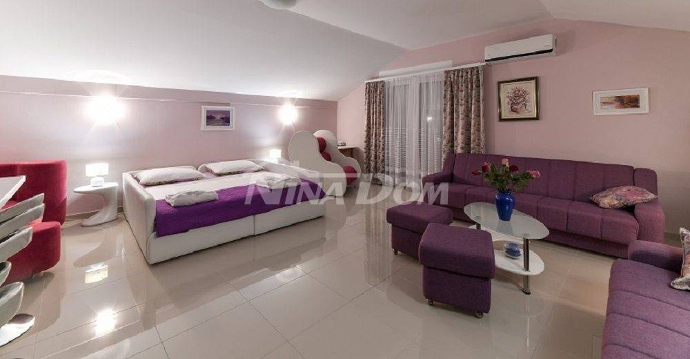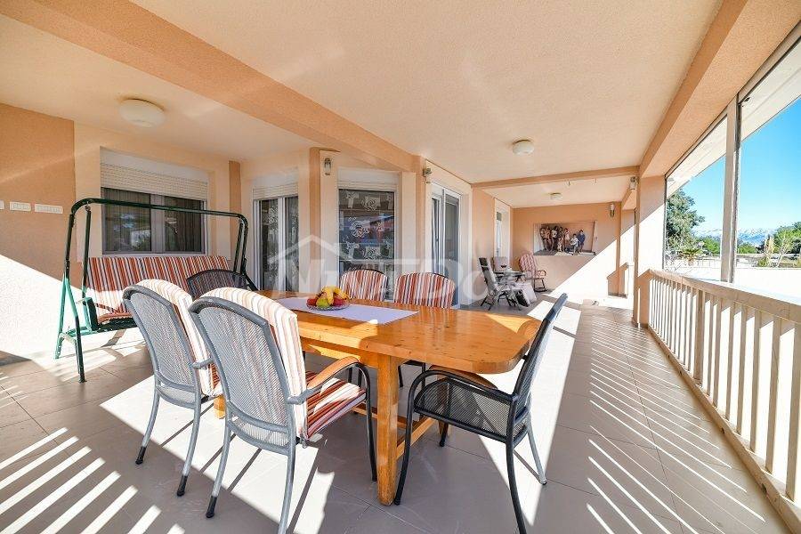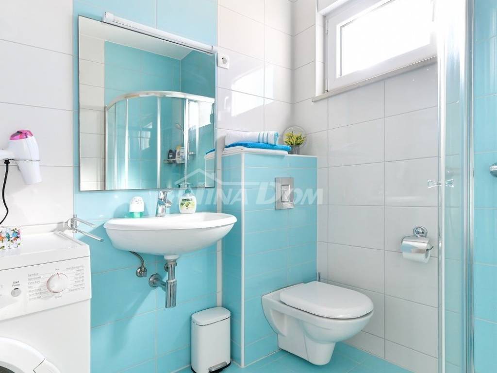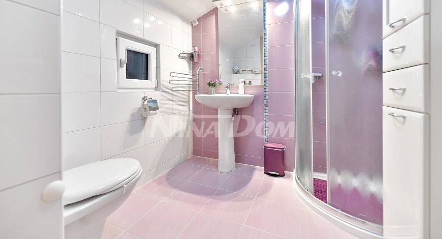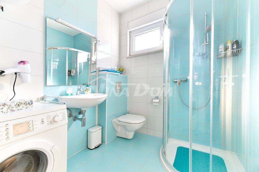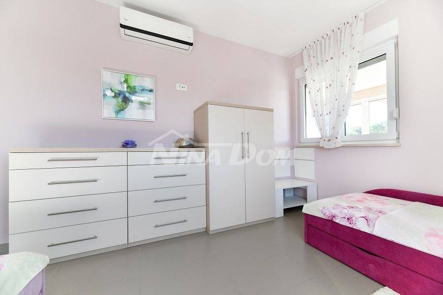 Prizemlje: velika natkrivena terasa, kuhinja s dnevnim boravkom i blagovaonicom, kupaona, garderoba, dvije spavaće sobe od kojih jedna ima svoju kupaonicu.