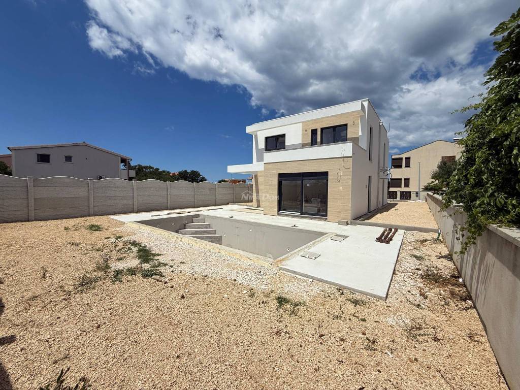 U prizemlju se nalazi ulaz,hodnik, stepenište za gornji kat , open space dnevni boravak s kuhinjom te izlazom na vanjsku terasu , spavaća soba s vlastitom kupaonom te spremišta.Na prvom katu se nalaze dvije spavaće sobe s vlastitom kupaonicom , balkona te terasa. Prostire se na zemljištu veličine 402 m2 , a kojoj pripada 300 m2 okućnice na kojoj se nalazi bazen.Kuća se planira početi graditi 9/2024 te je planirani dovršetak nekretnine 5/2025 godine.Vlasništvo 1/1 bez tereta , prodaje se isključivo kao gotova kuća sistema ključ u ruke.