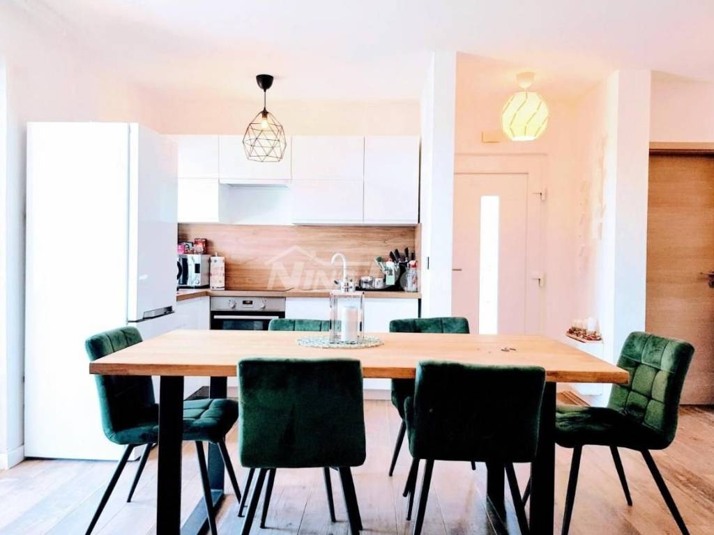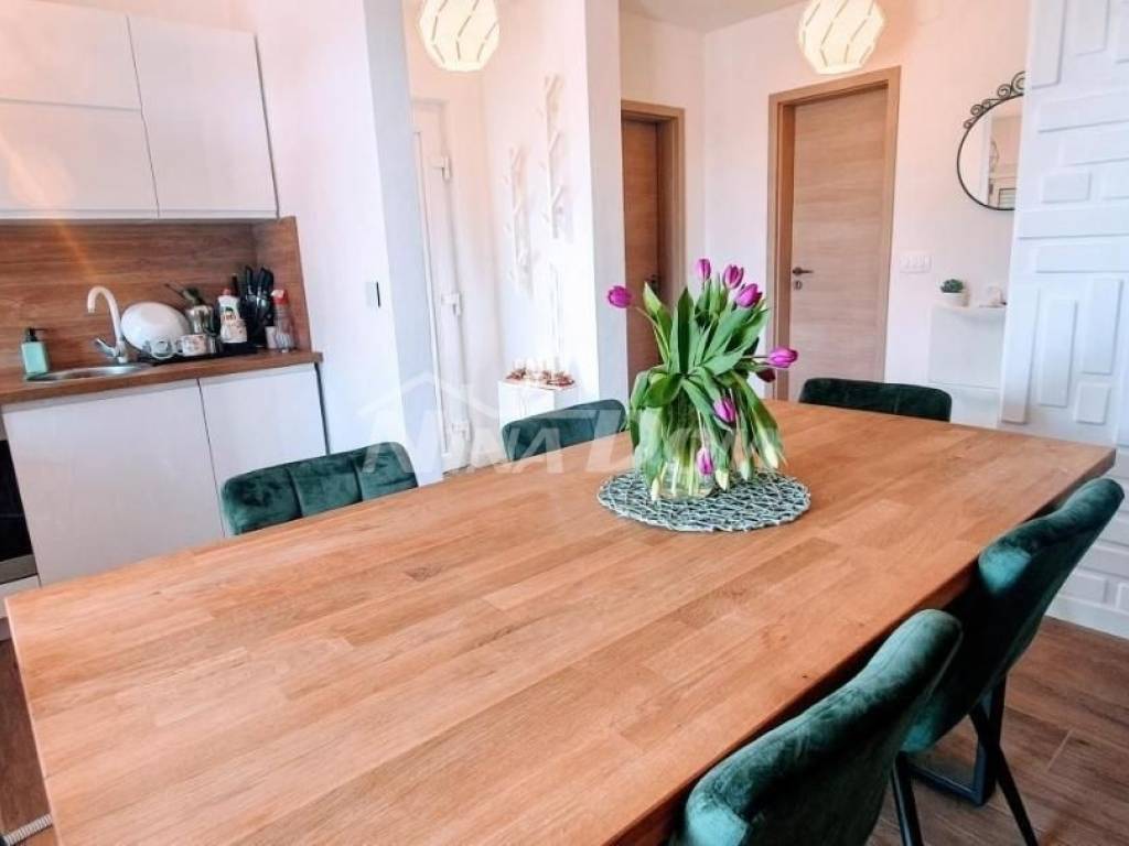 Sastoji se od predulaza, kuhinje s blagovaonice s dnevnim boravkom, tri spavaće sobe od kojih jedna ima svoju kupaonicu, i jedna zajednička kupaonica.