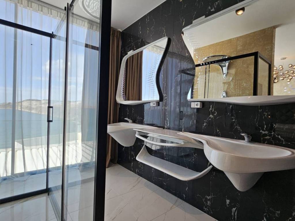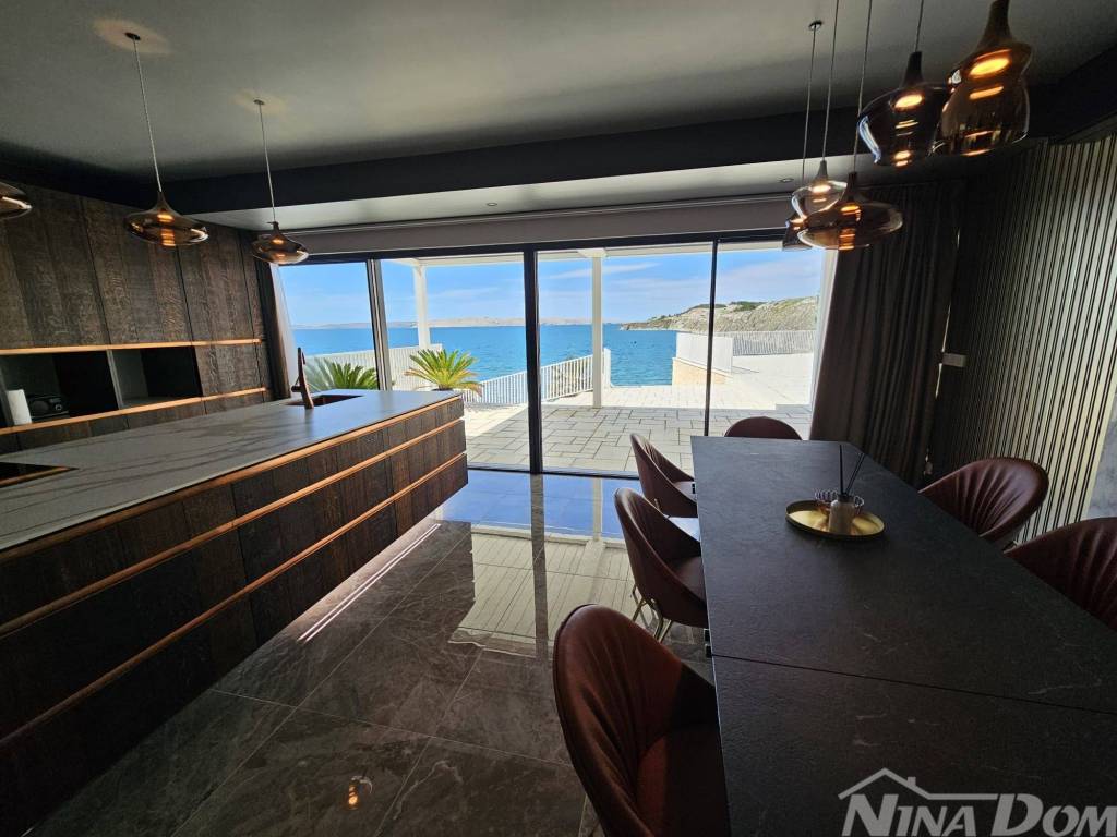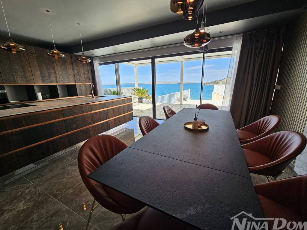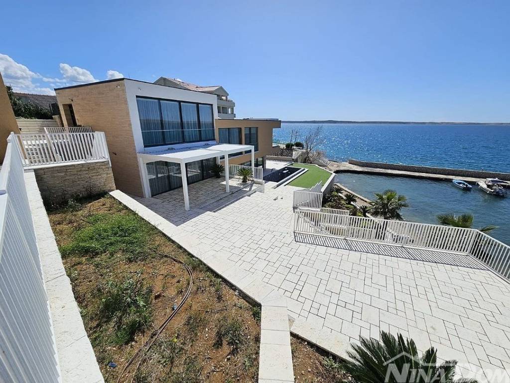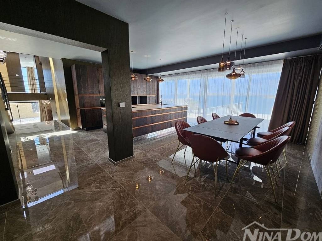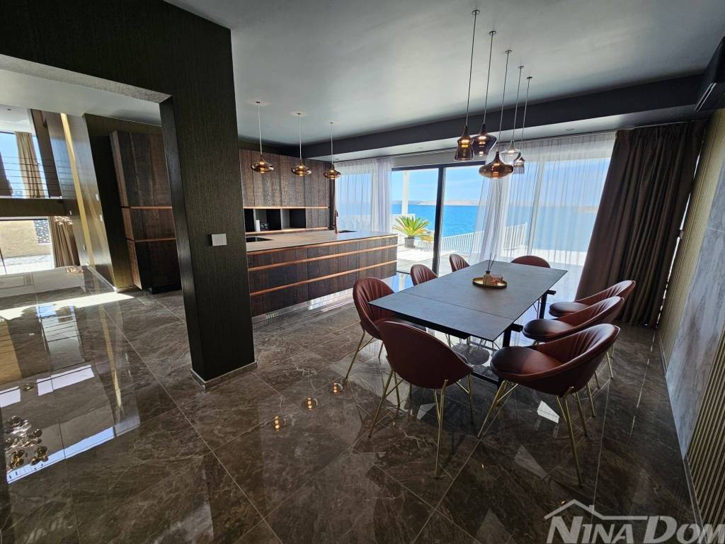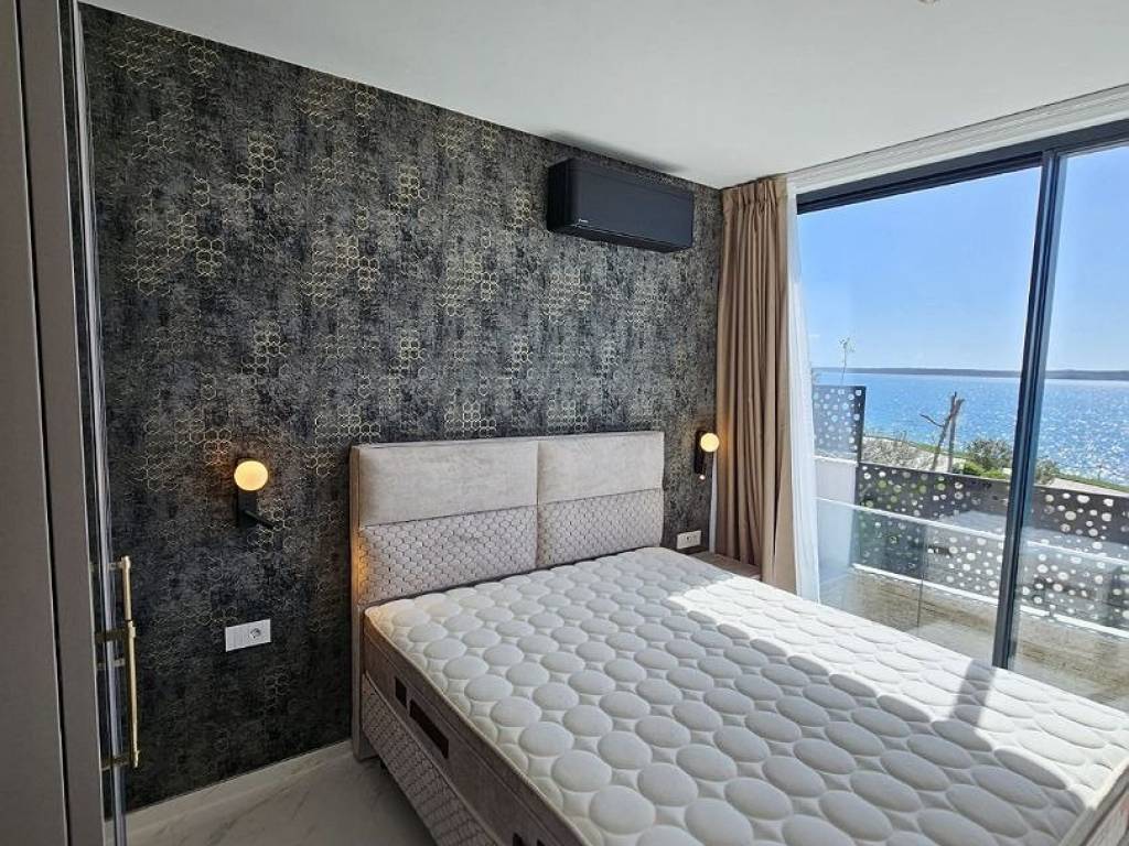 Prodaje se dizajnerska vila na samoj plaži.Kuća je građena od visoko kvalitetnih,probranih materijala.Cortizo automatska alu stolarija,auto atske zavjese,Versace pločice,tapete itd,Bang and Olufsen iitd.Sastojj se od dva odvojena dijela.Prvi dio se sastoji od garaže i studio apartmana,namijenjenih za poslugu ili goste.Drugi ,glavni dio se sastoji od atraktivnog ulaza,hodnika,stubišta, iz kojeg se pruža pogled na prekrasno ,razvedeno stubište.U prizemlju se nalaze dnevni boravak,prostor za relaksaciju,wc,praona rublja sa tehničkim dijelom,te kuhinja sa blagovaonom.Valja napomenuti da se iz svih prostorija pruža prekrasan pogled na očaravajući krajolik.Na katu se nalaze četiri spavaće sobe od kojih,dvije sa vlastitim kupatilom,dok ostale dvije dijele treće kupatilo.S vanjske strane se nalazi ostava za vrtni namještaj te bazenska pomagala.Na prostranoj okućnici se nalazi bazen sa tušem.Sa prekrasne terase se spušta vlastitim stepenicama na prekrasnu plažu i malu lučicu kojoj se nalazi privatni vez za brodicu.Za sva dodatna pitanja i obilazak,stojimo vam na raspolaganju.