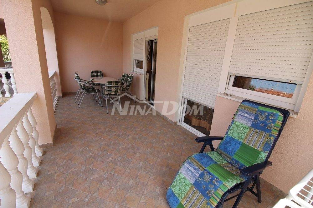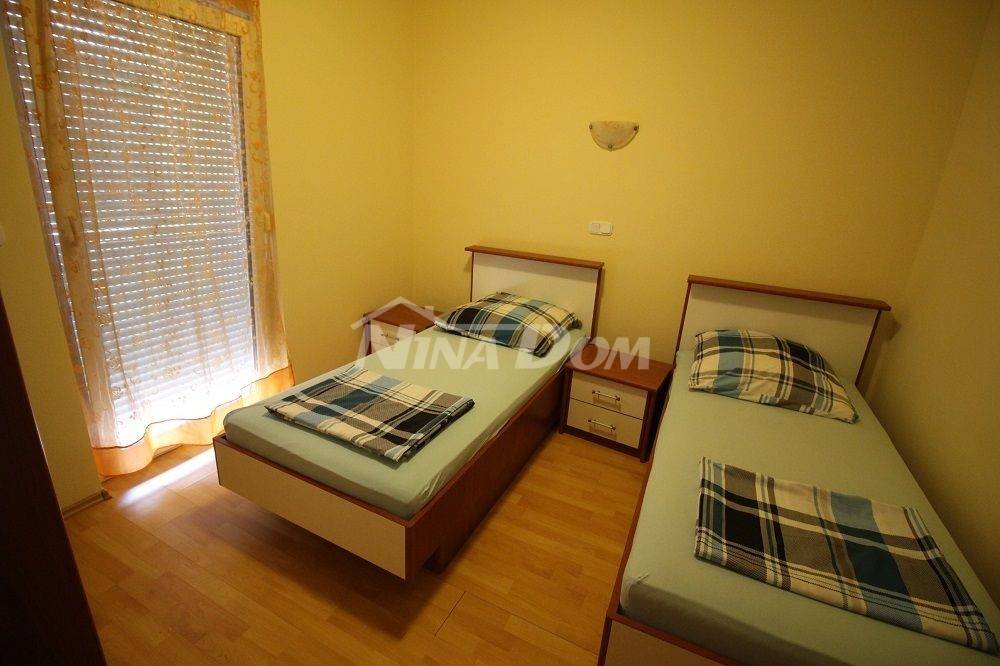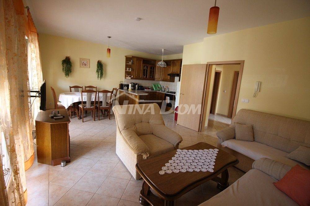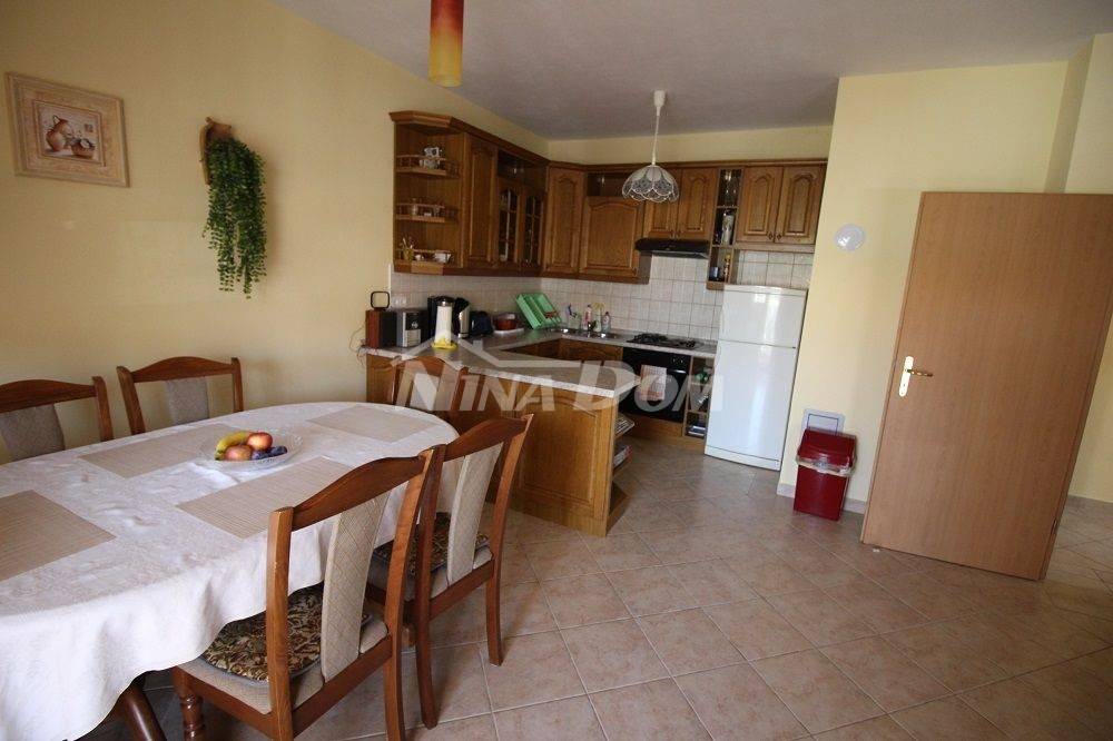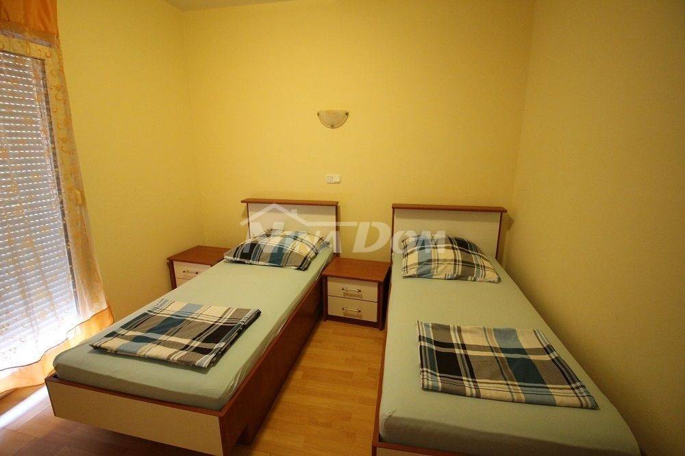 Prizemlje: hodnik, kuhinja s dnevnim boravkom i blagovaonicom, dvije spavaće sobe, kupaona lijepa velika natrivena terasasa s prednje strane i terasa sa zaadnje strane nekretnine. Ostava ispod stepenica. 80 m2.