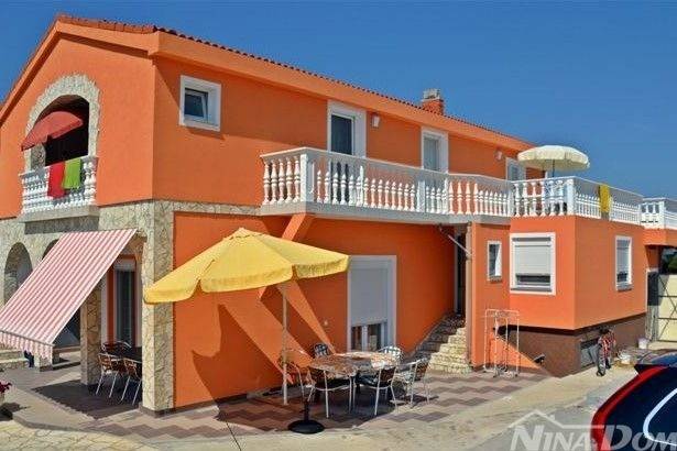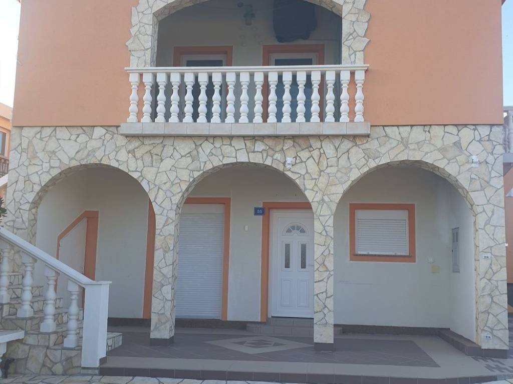 Vanjske stepenice za kat: na katu dva apartmana od kojih je jedan s jednom spavaćom sobom, kuhinja s dnevnim boravkom, kupaona lođa, terasa 37,01 m2 po etažnom elaboratu.